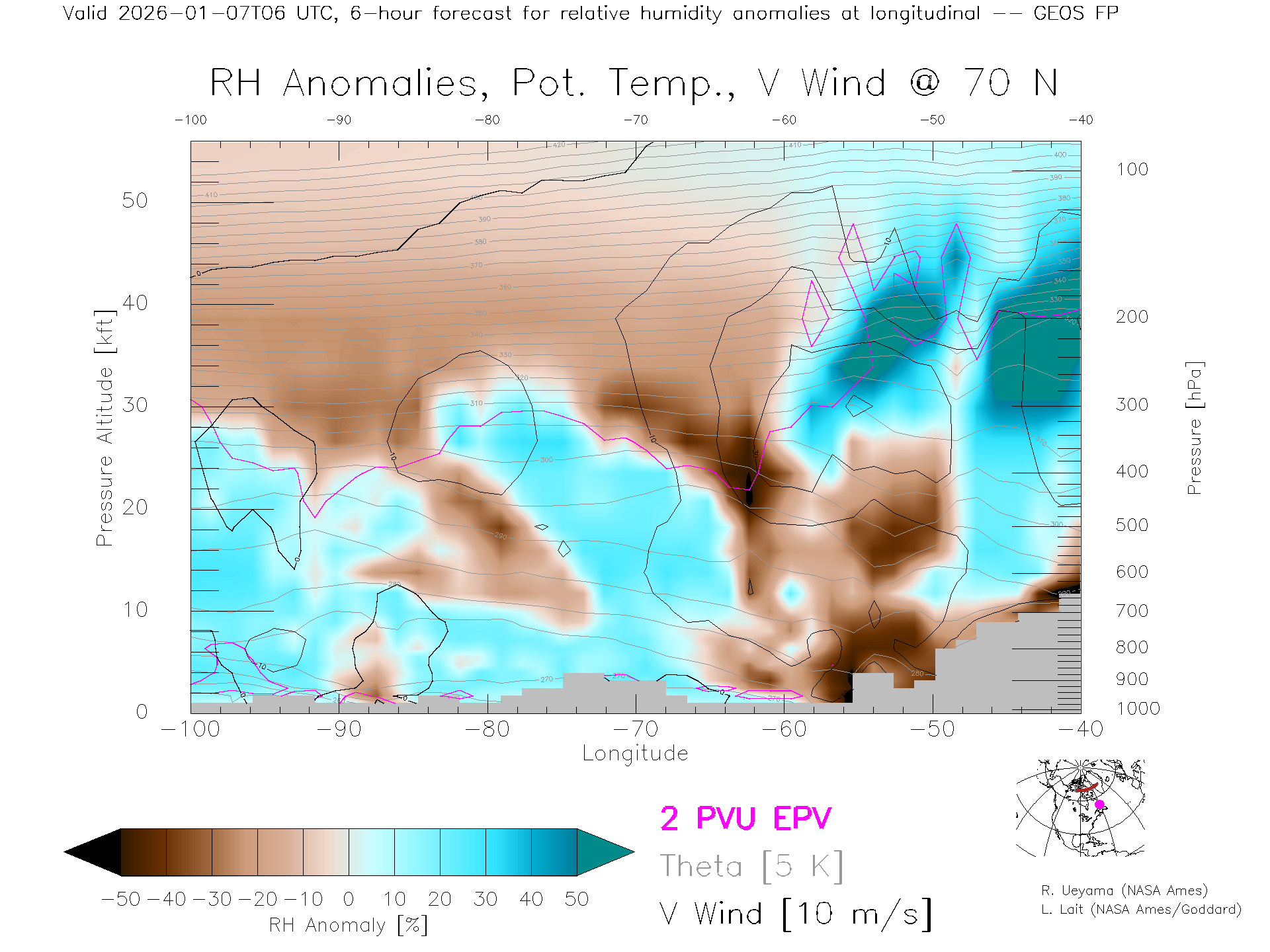 GEOS Forecast Rel. Hum. X-Section (70 N)