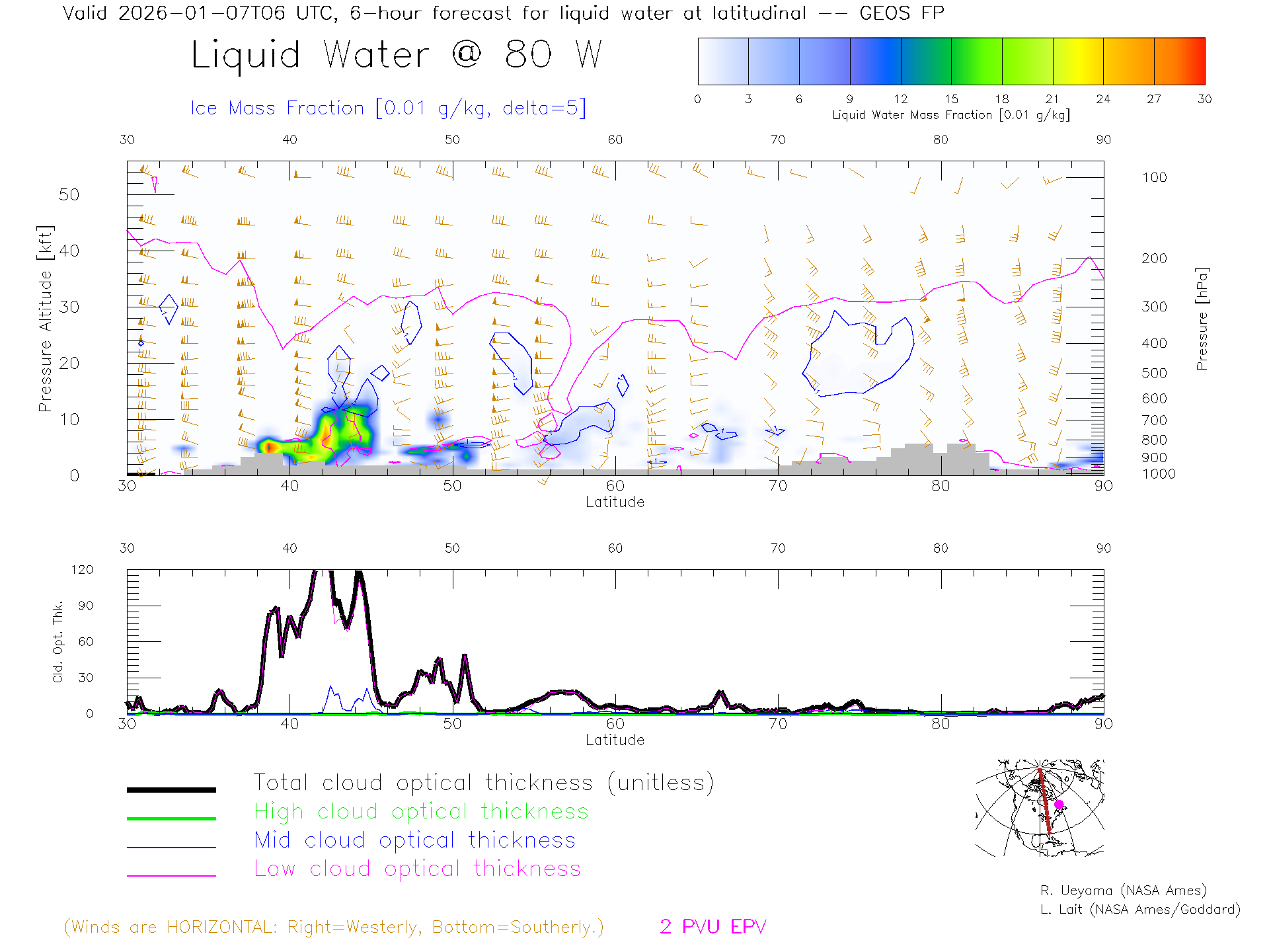 GEOS Forecast Cloud Water Content X-Section (80 W)