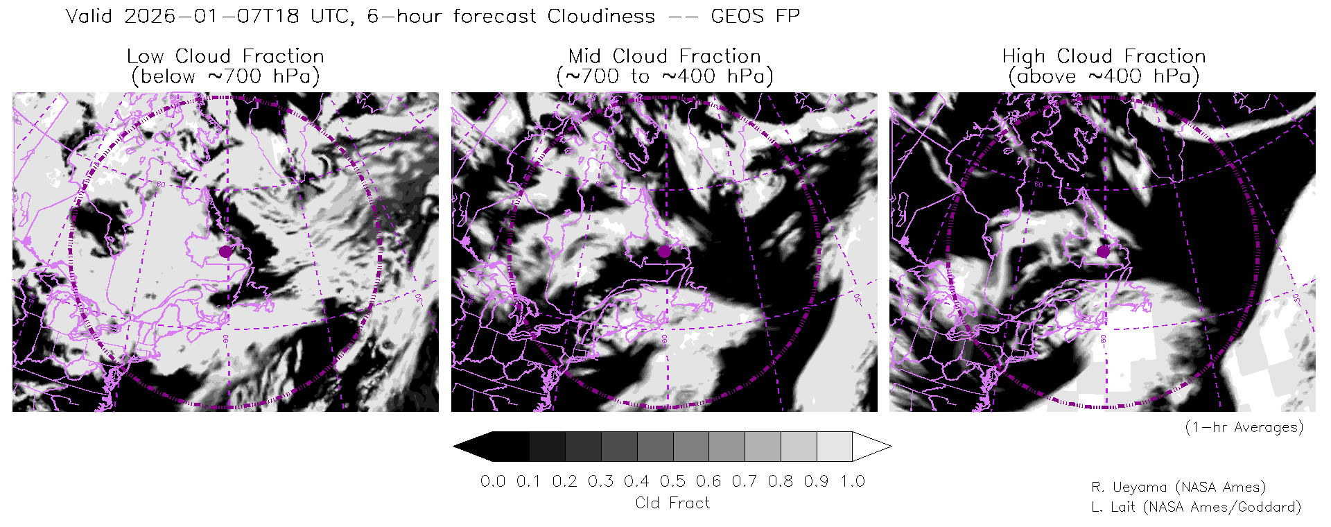 GEOS Forecast Cloud Fraction (High, Mid, Low)