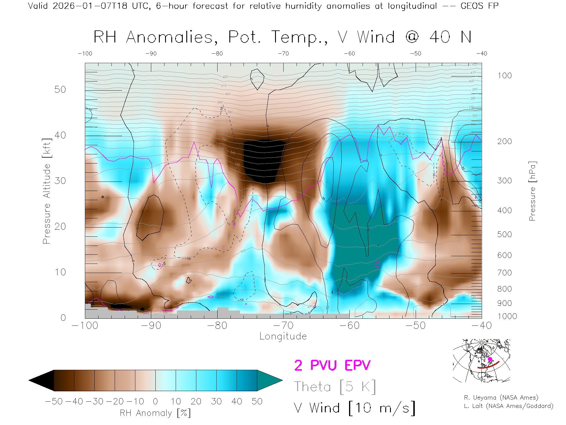 GEOS Forecast Rel. Hum. X-Section (40 N)
