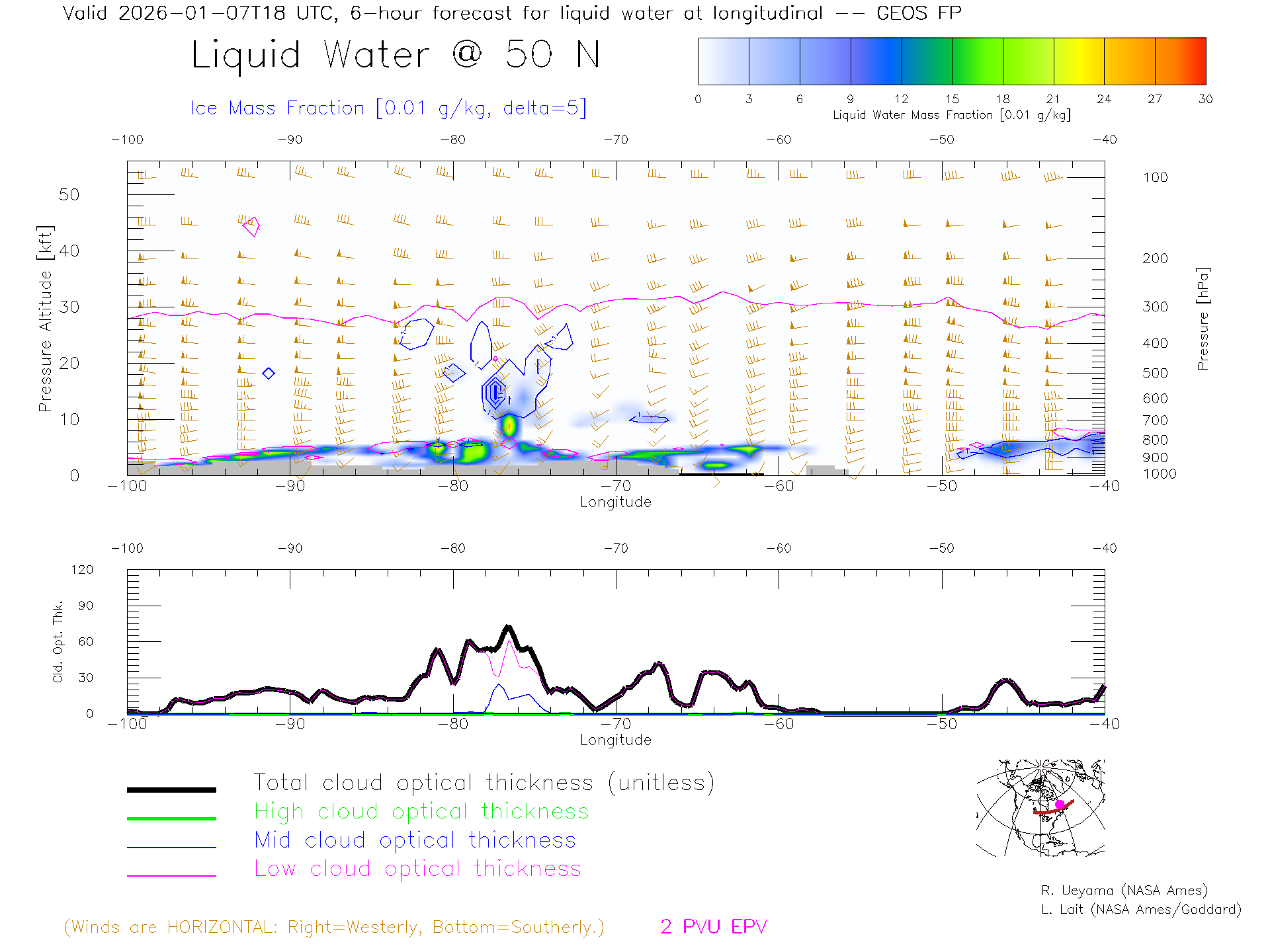 GEOS Forecast Cloud Water Content X-Section (50 N)