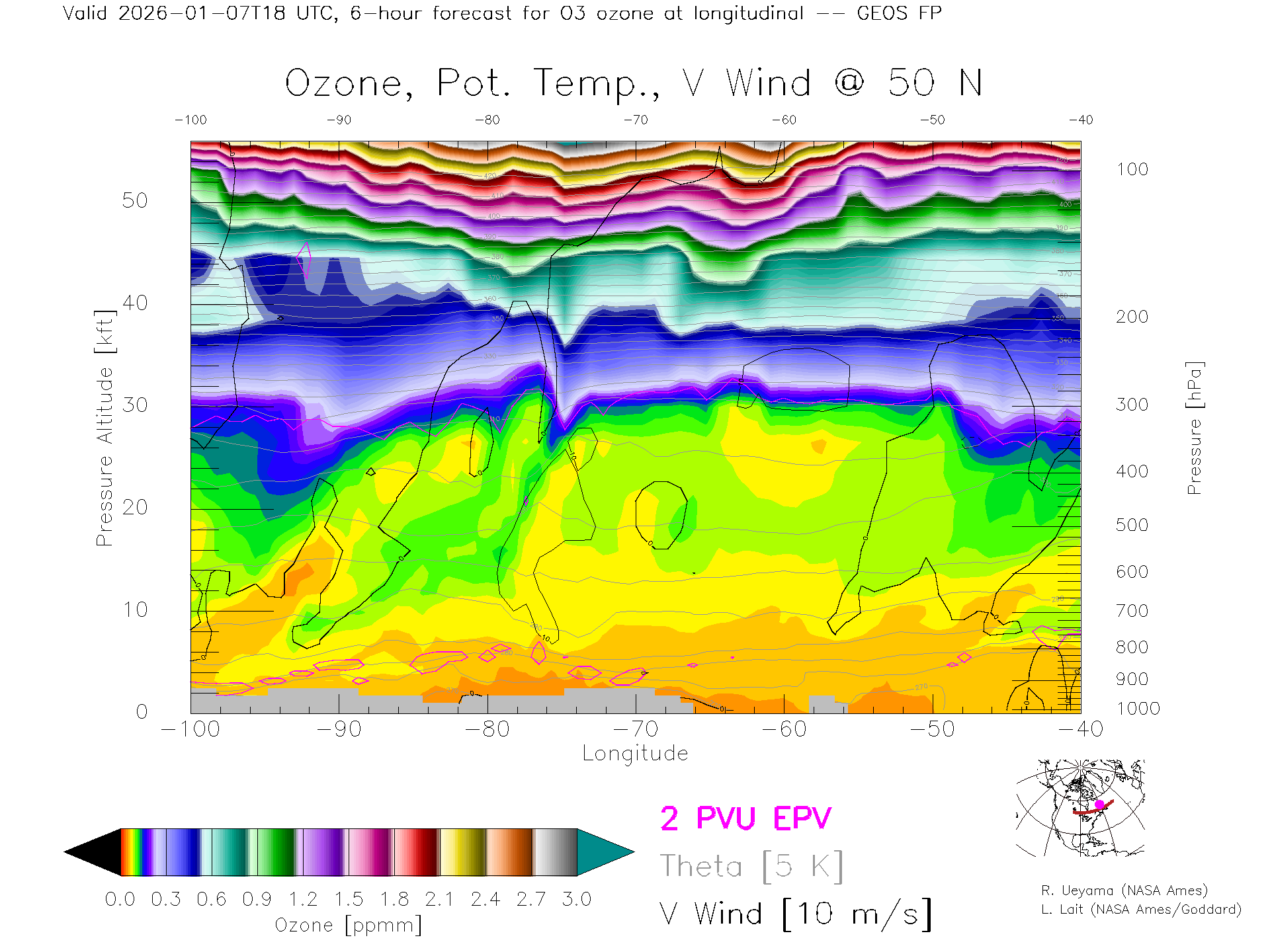 GEOS Forecast Ozone X-Section (50 N)