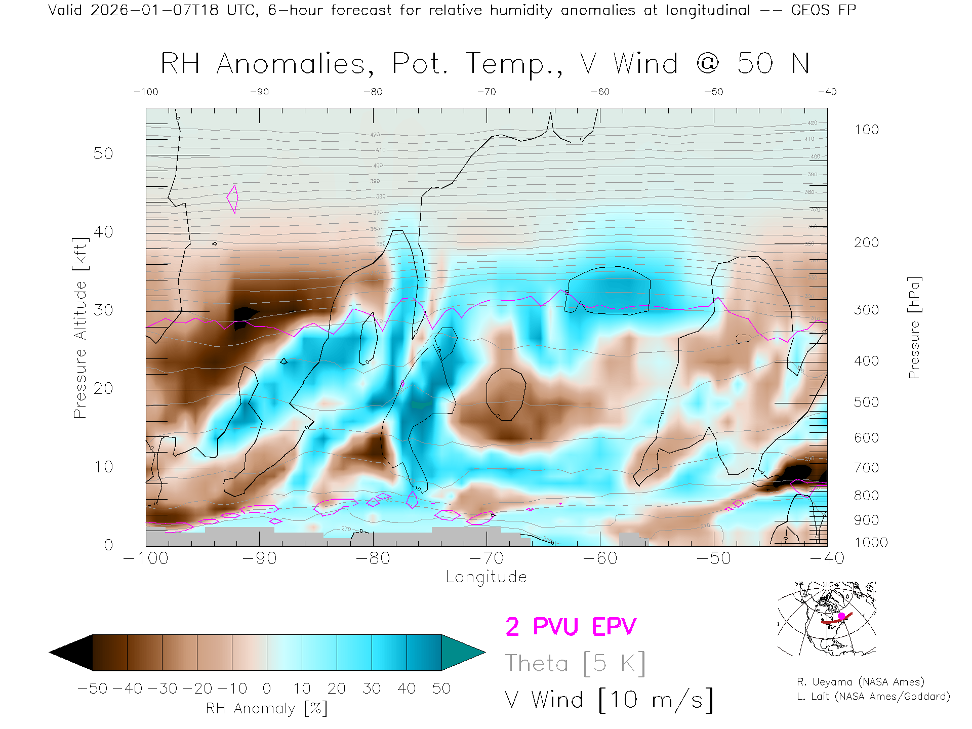 GEOS Forecast Rel. Hum. X-Section (50 N)