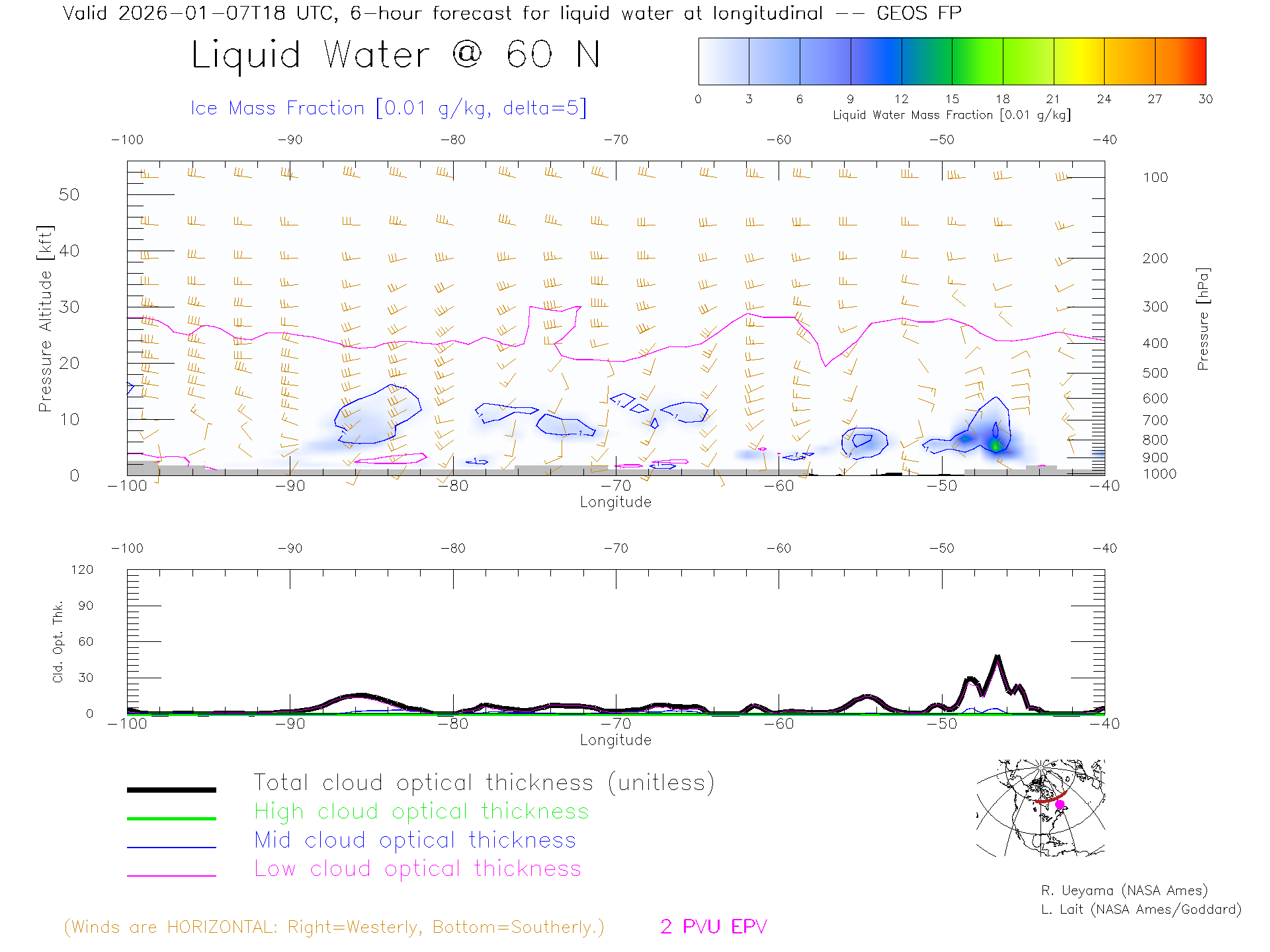 GEOS Forecast Cloud Water Content X-Section (60 N)