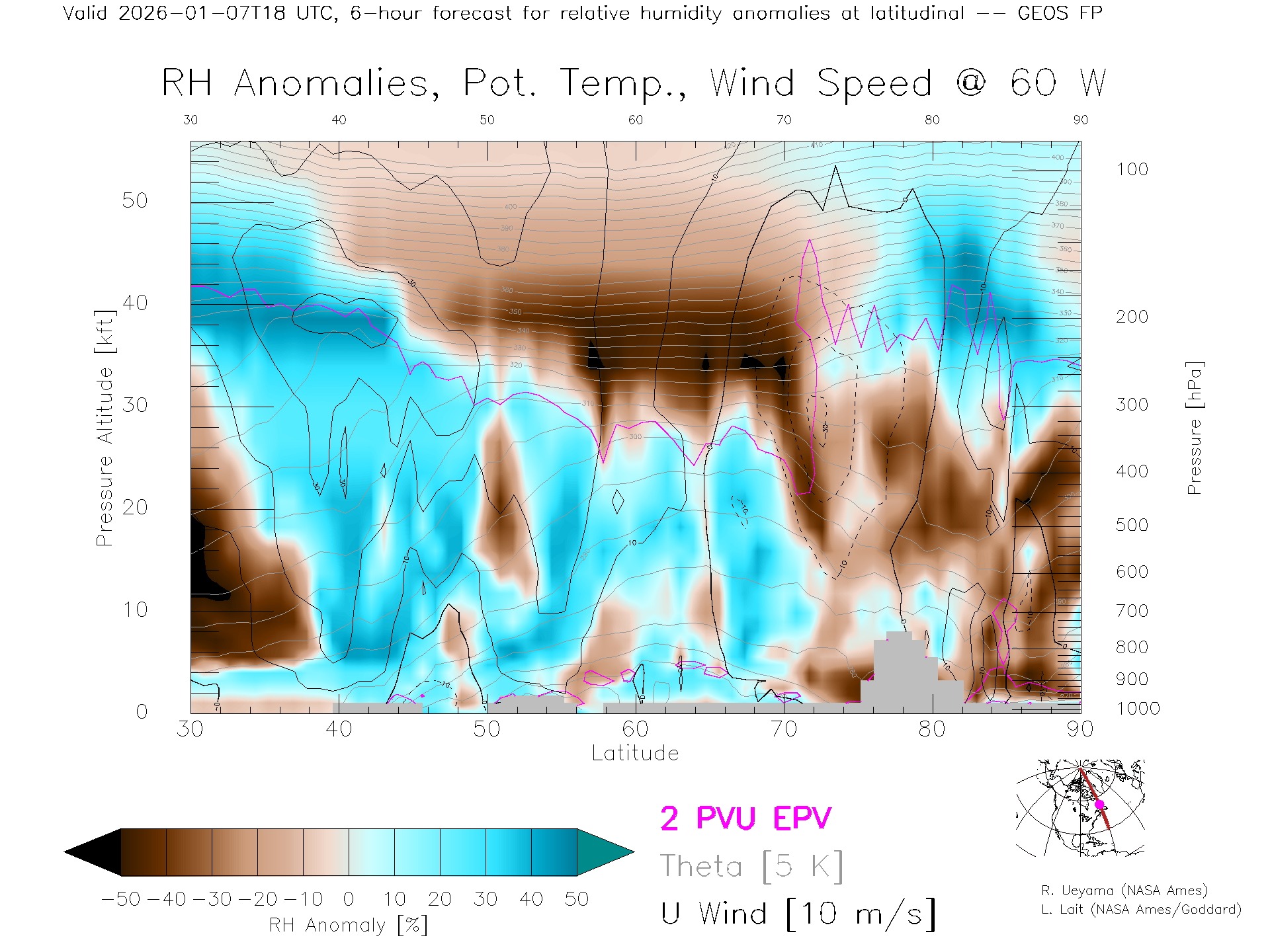 GEOS Forecast Rel. Hum. X-Section (60 W)