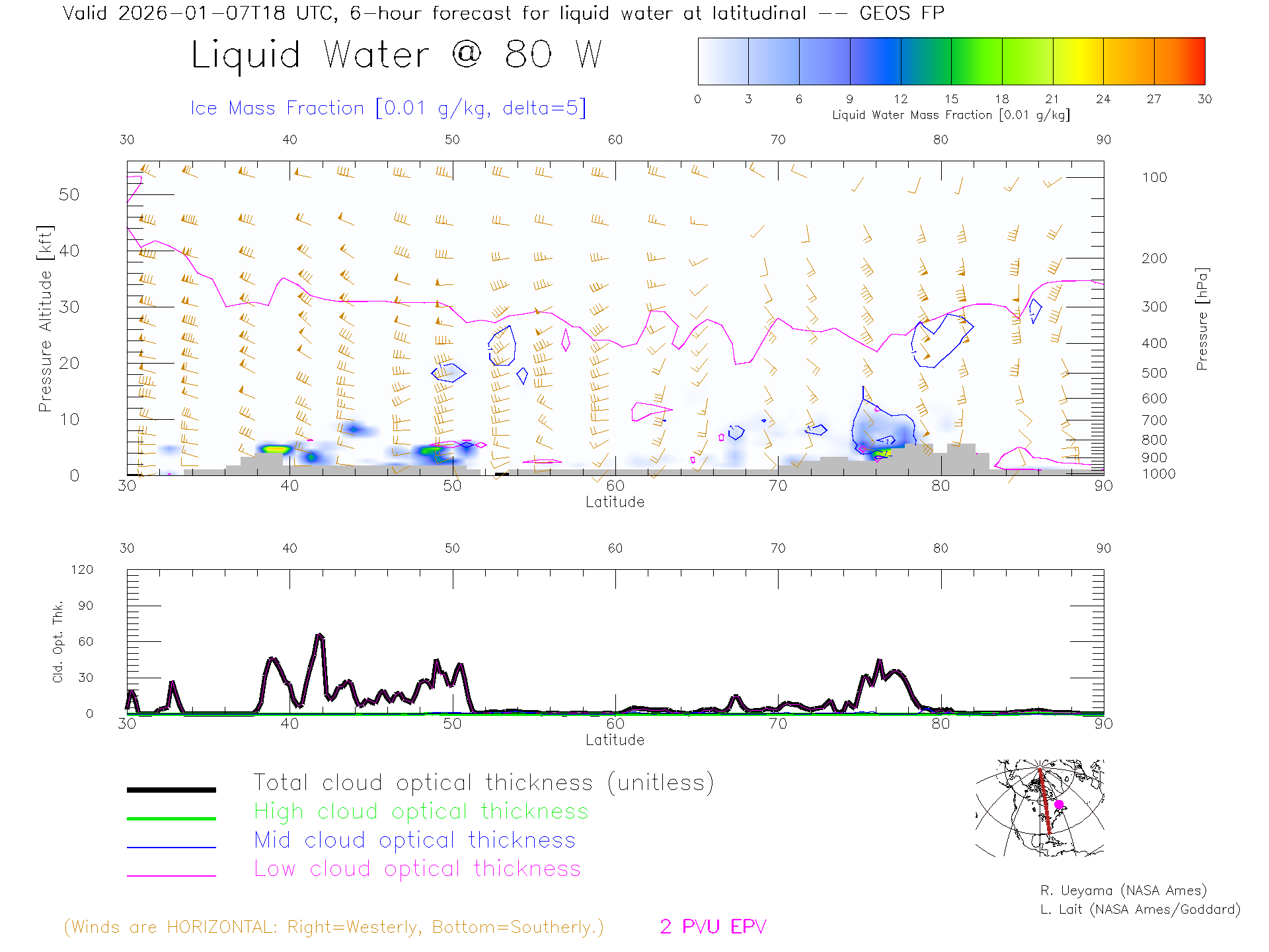 GEOS Forecast Cloud Water Content X-Section (80 W)