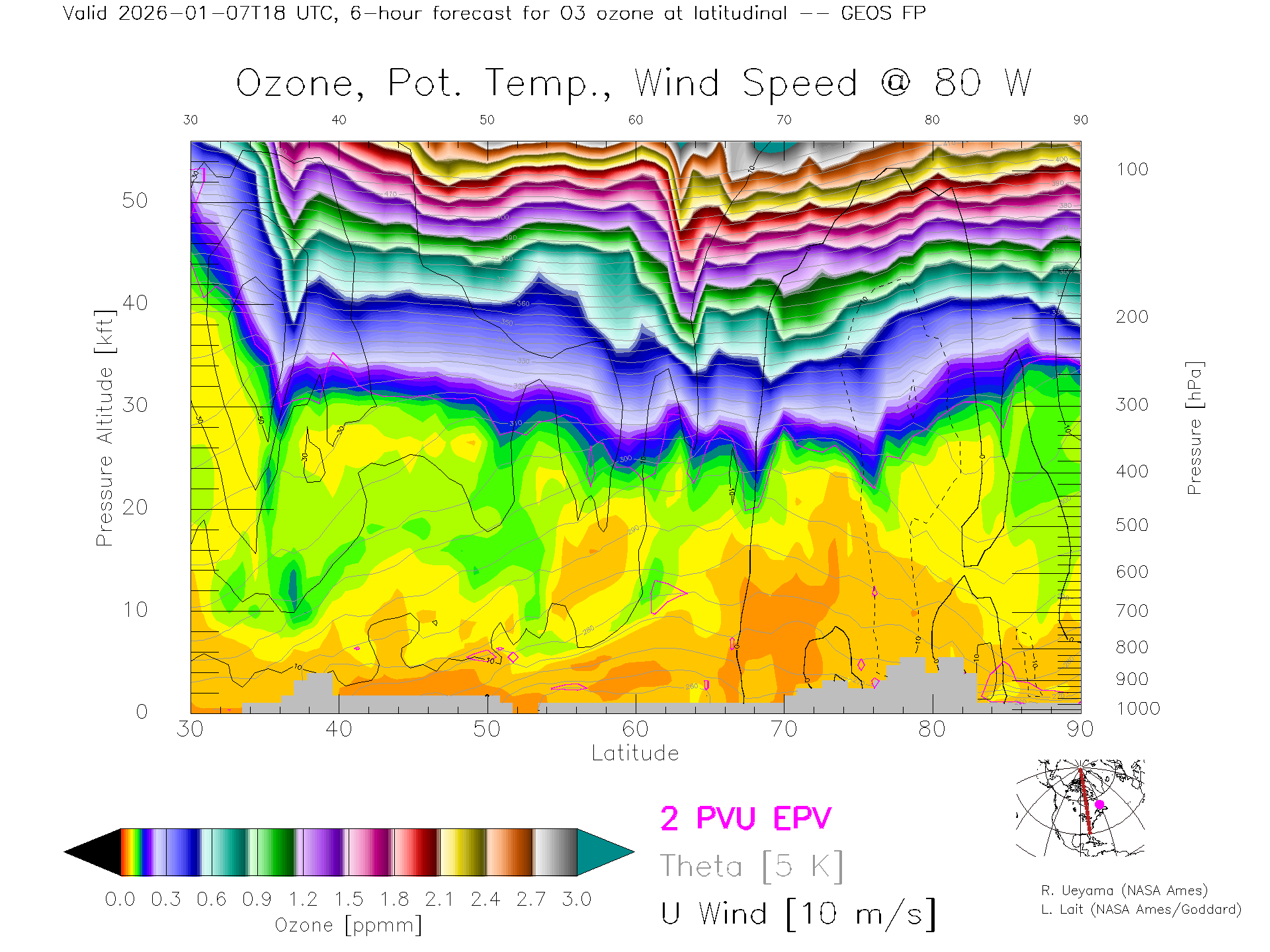 GEOS Forecast Ozone X-Section (80 W)
