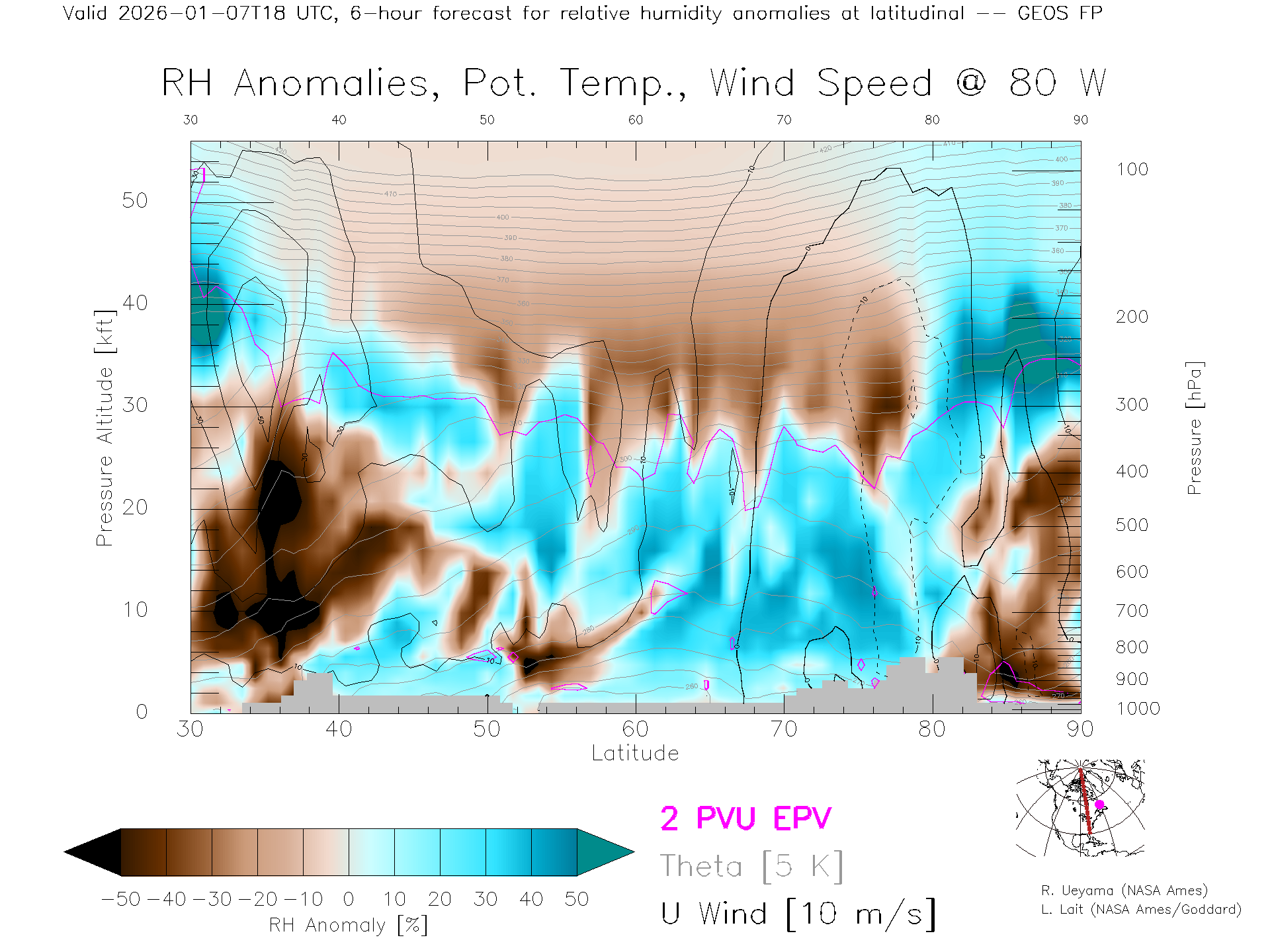 GEOS Forecast Rel. Hum. X-Section (80 W)
