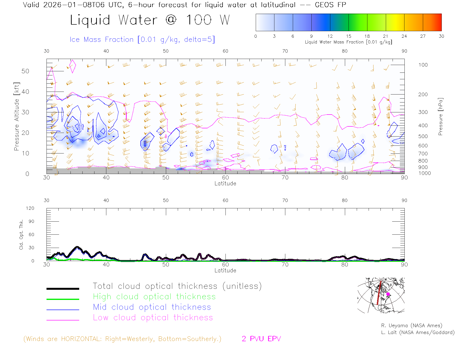 GEOS Forecast Cloud Water Content X-Section (100 W)