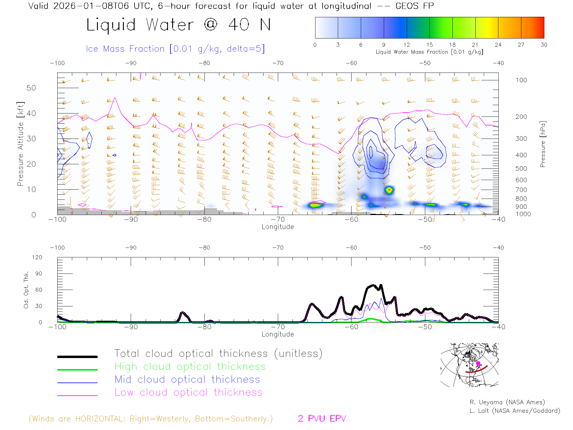 GEOS Forecast Cloud Water Content X-Section (40 N)