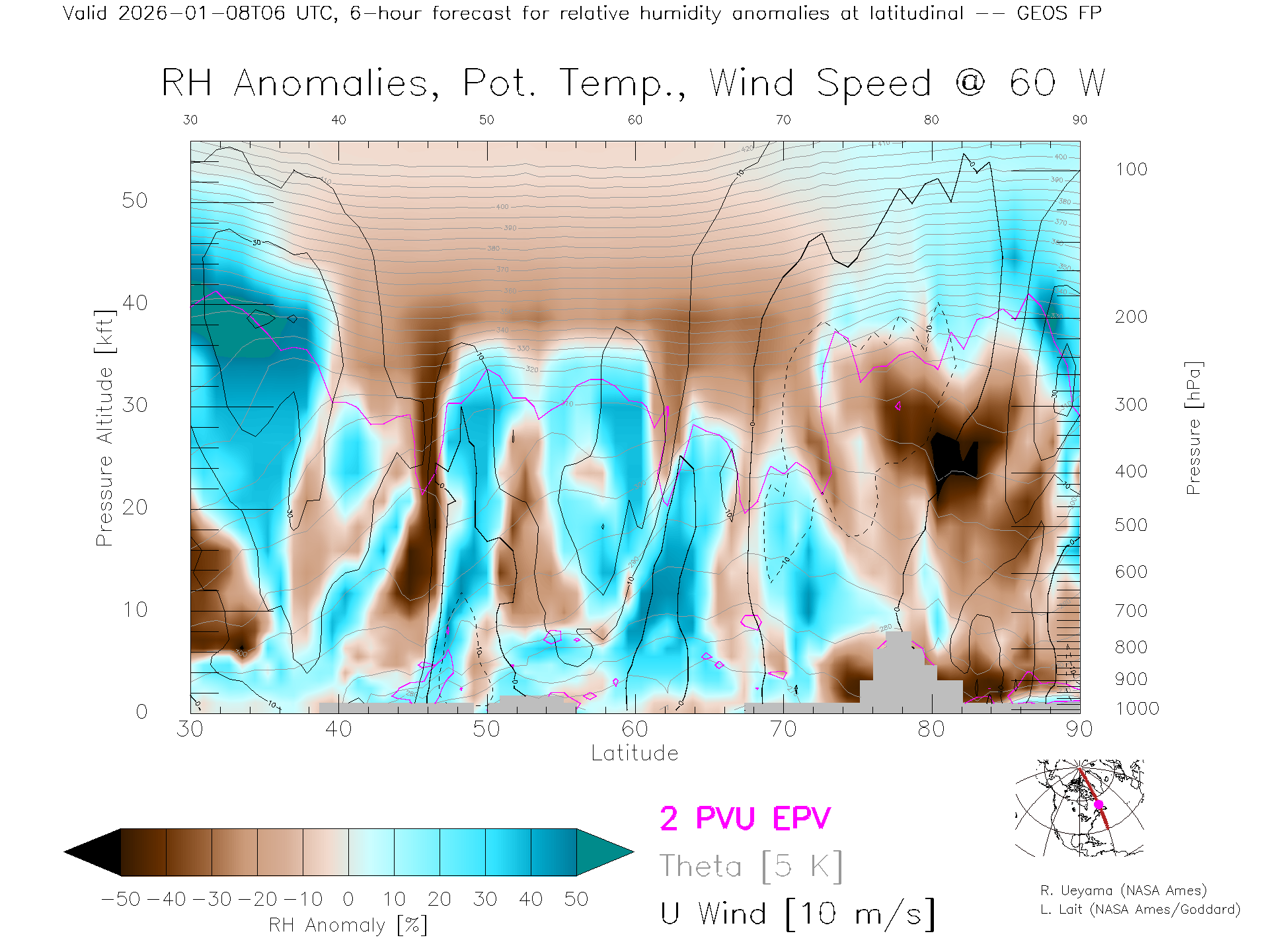 GEOS Forecast Rel. Hum. X-Section (60 W)