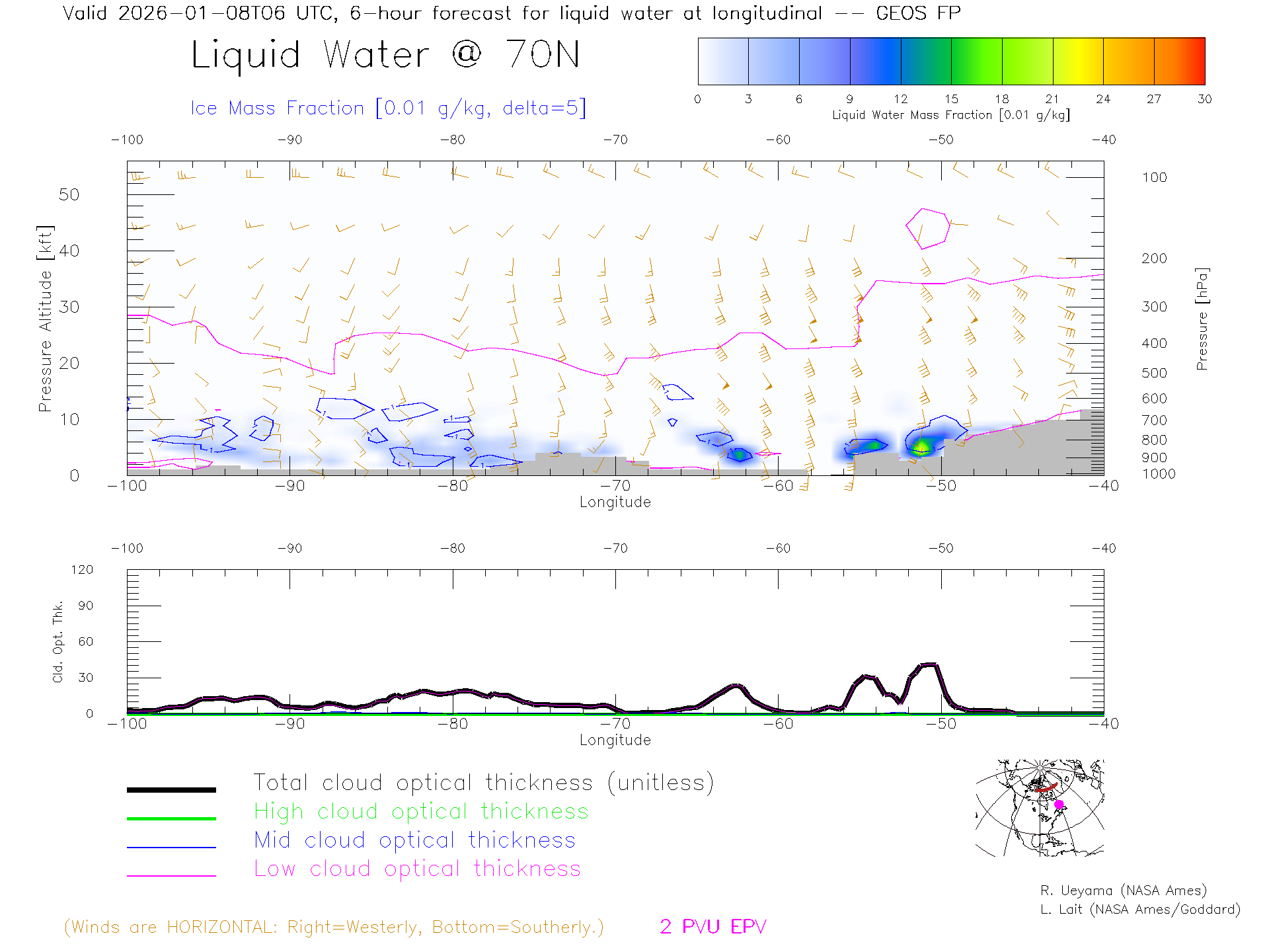 GEOS Forecast Cloud Water Content X-Section (70 N)