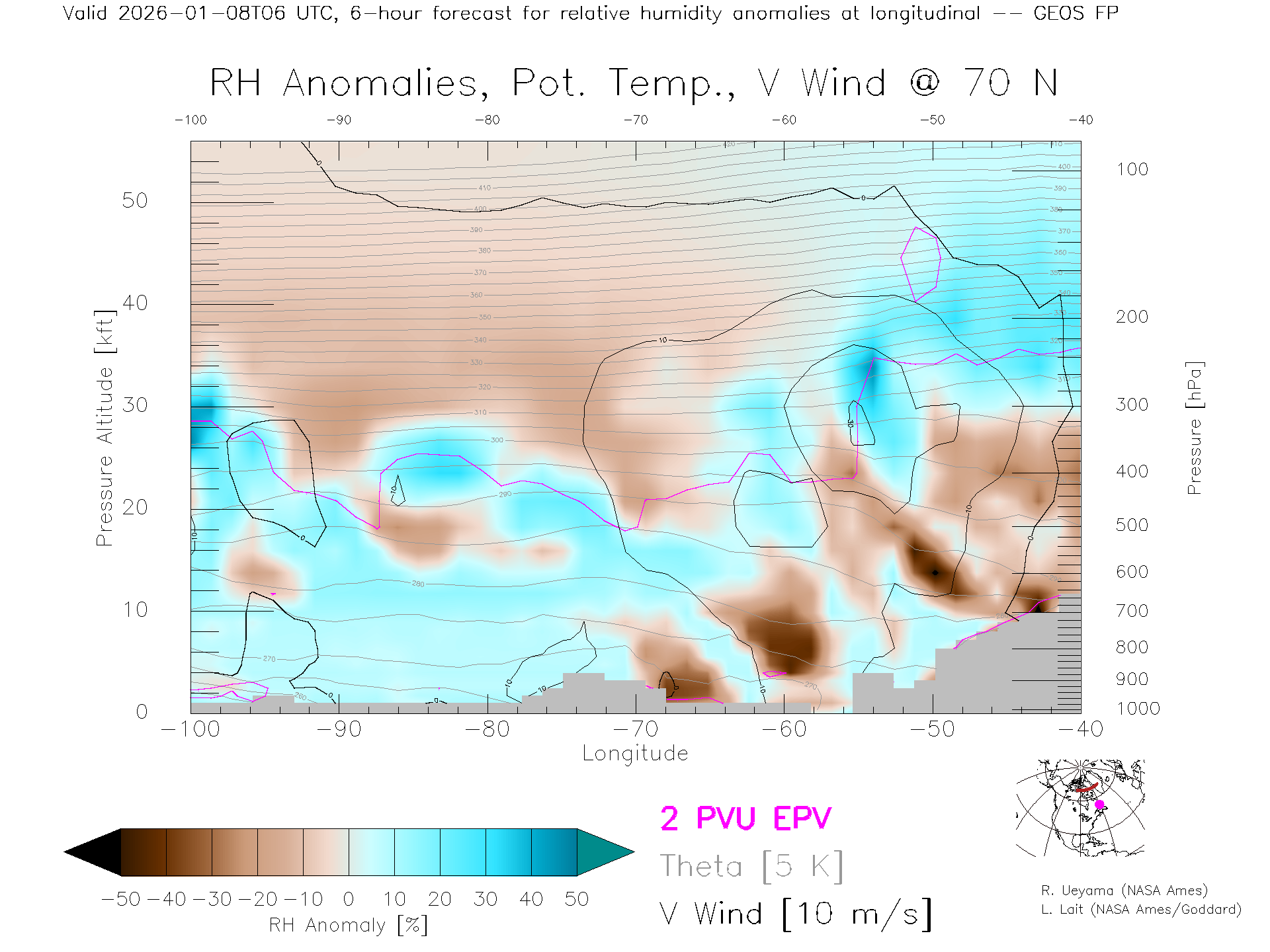 GEOS Forecast Rel. Hum. X-Section (70 N)