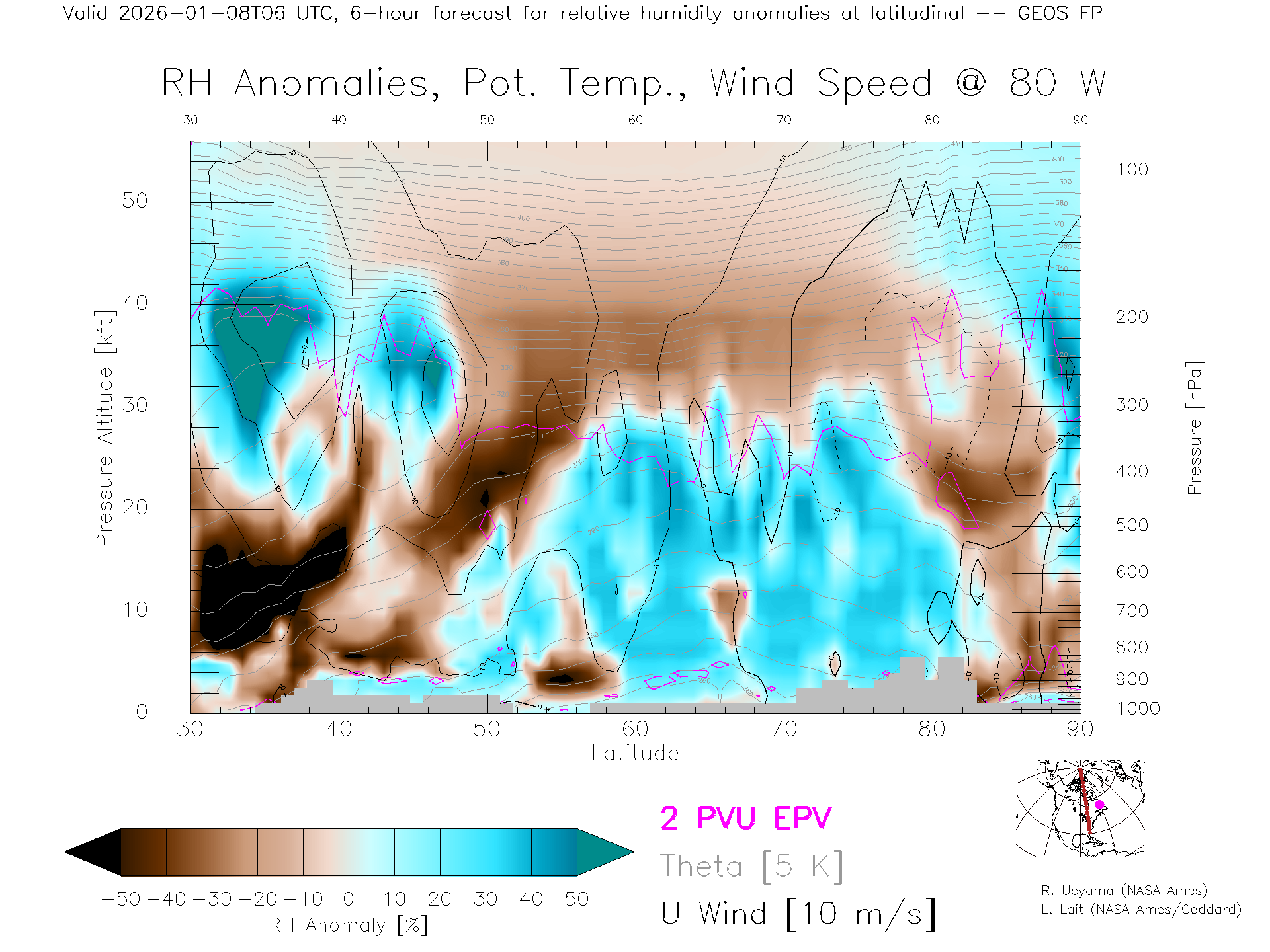 GEOS Forecast Rel. Hum. X-Section (80 W)