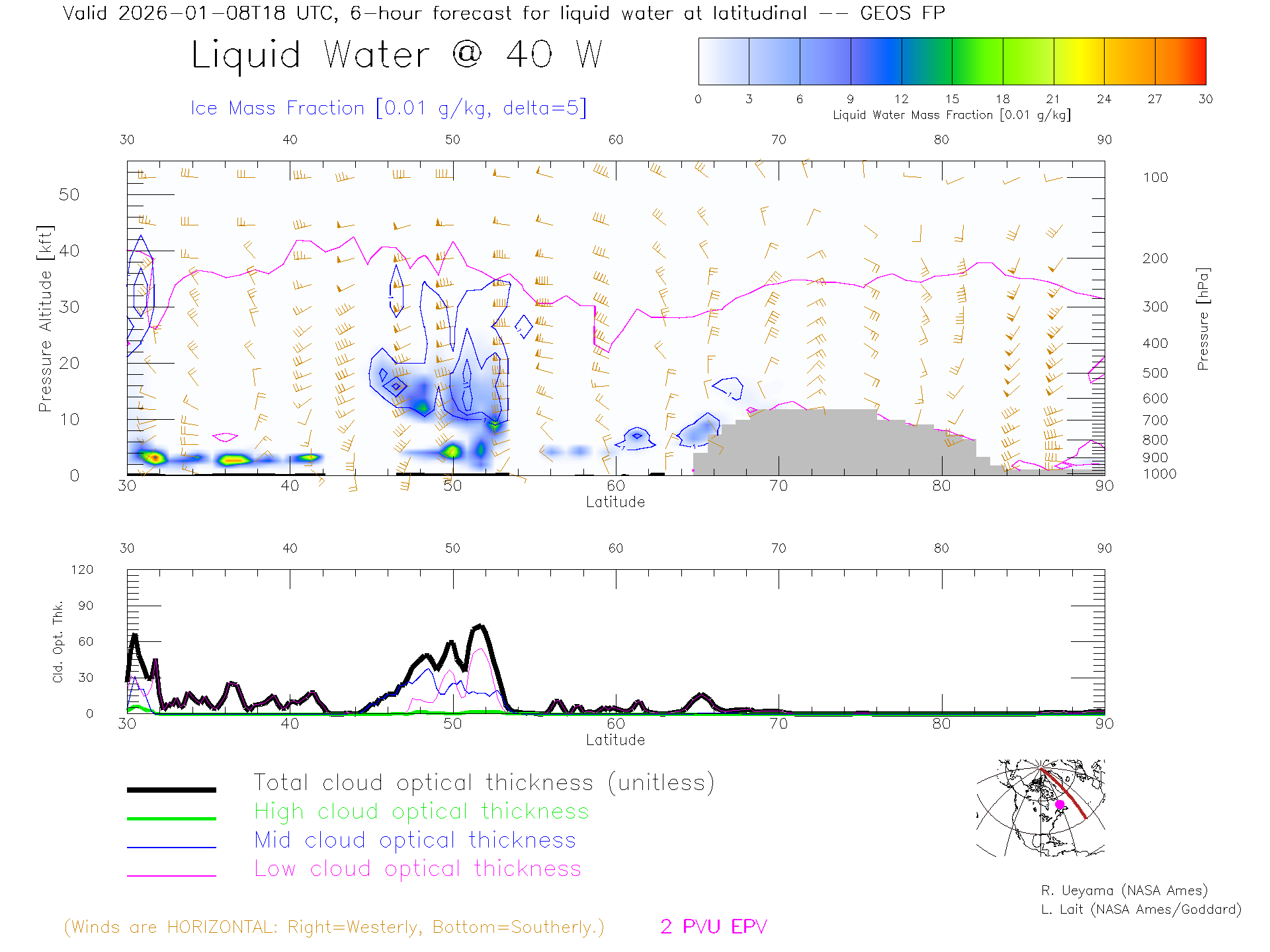 GEOS Forecast Cloud Water Content X-Section (40 W)