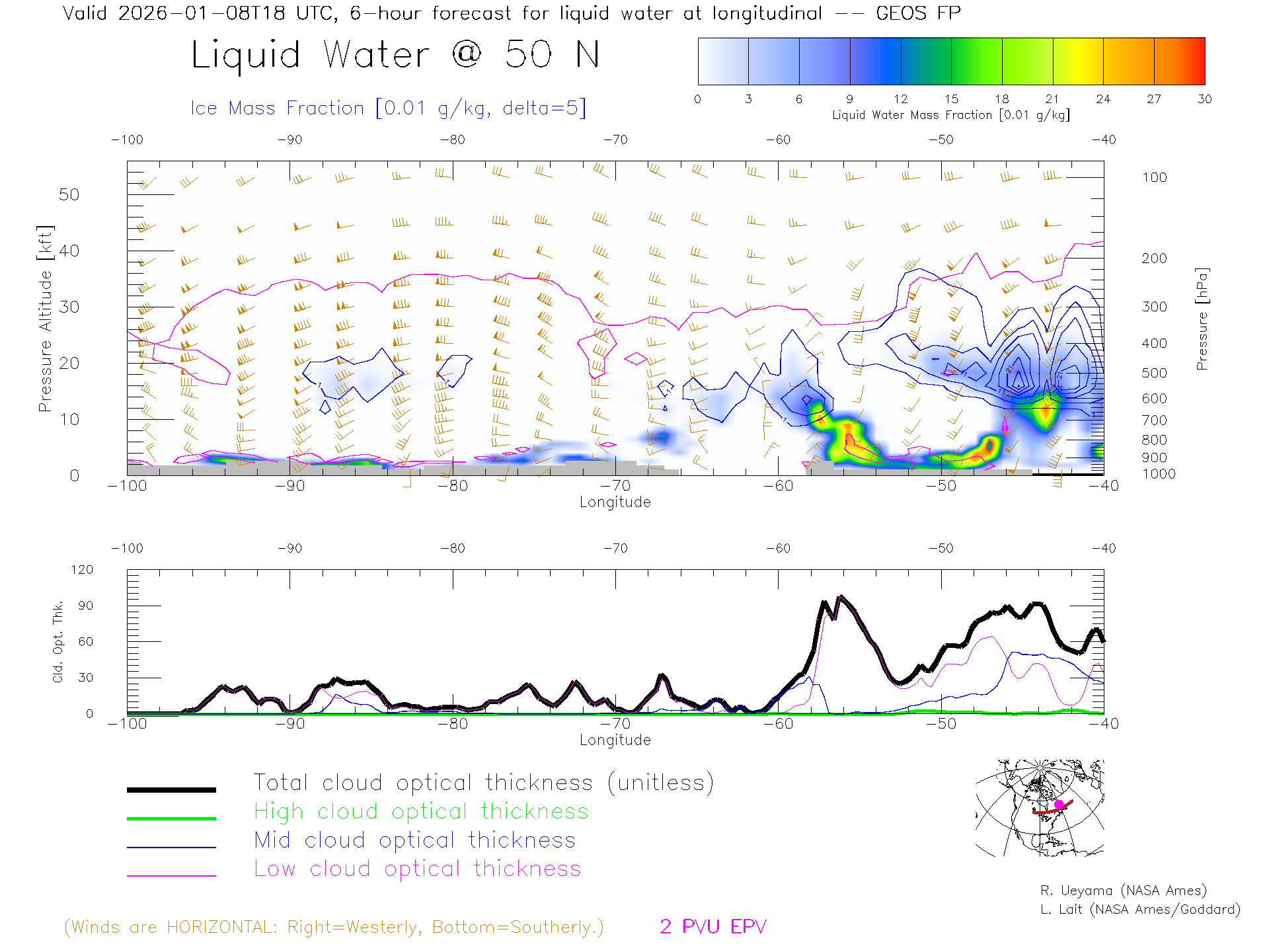 GEOS Forecast Cloud Water Content X-Section (50 N)