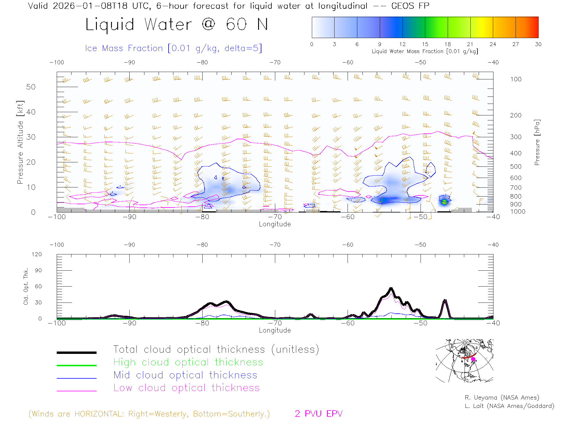 GEOS Forecast Cloud Water Content X-Section (60 N)