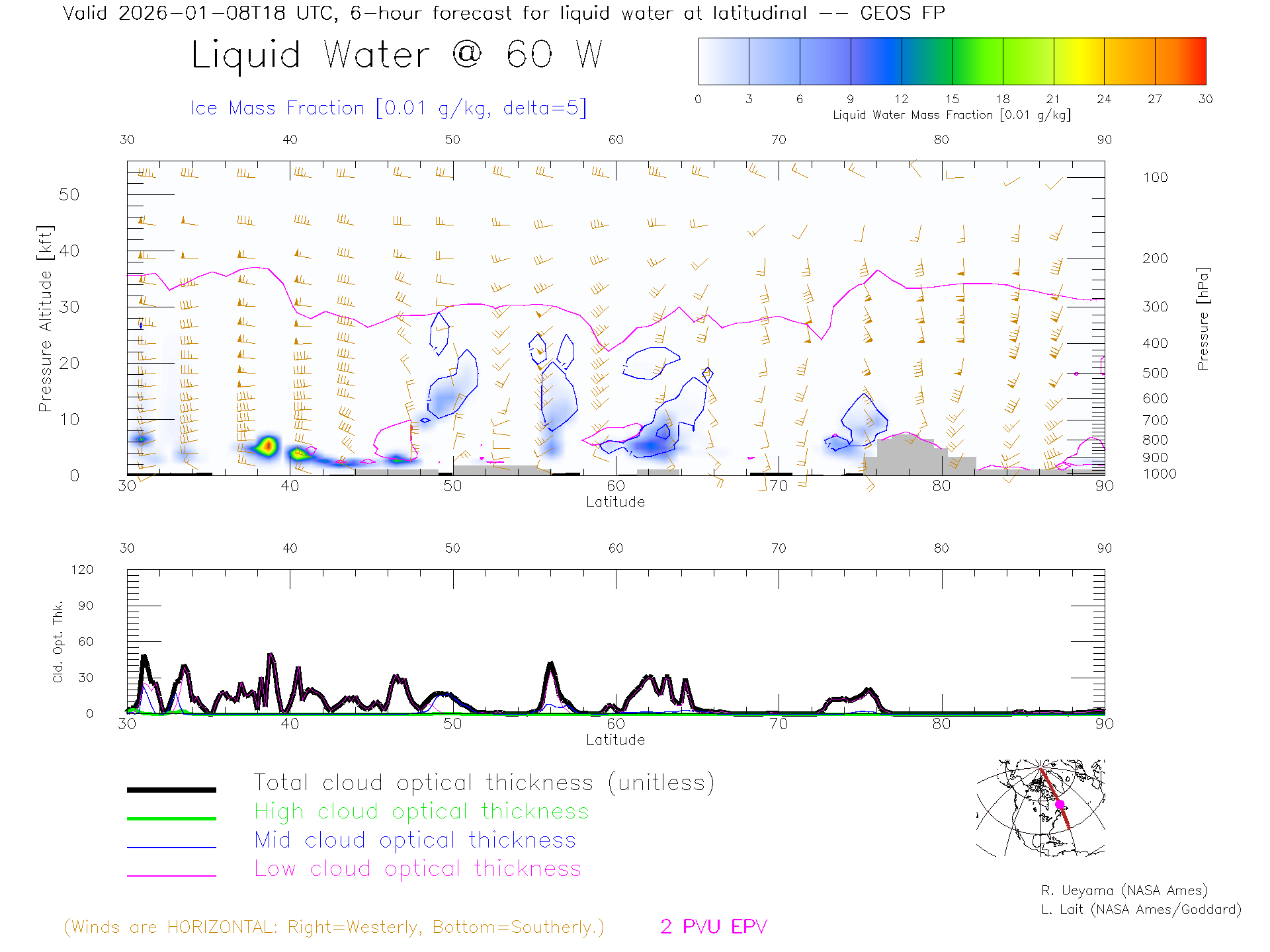 GEOS Forecast Cloud Water Content X-Section (60 W)