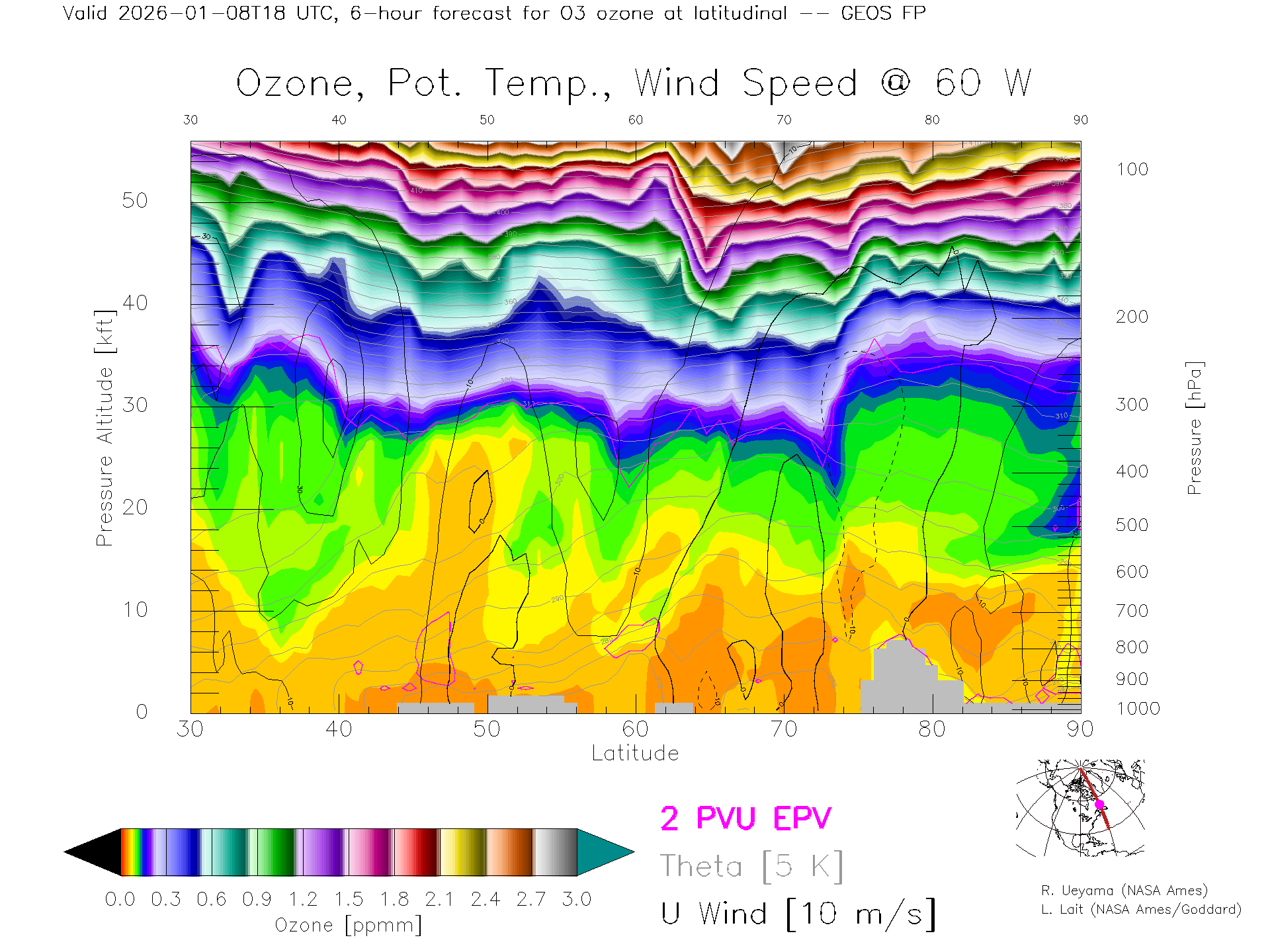 GEOS Forecast Ozone X-Section (60 W)