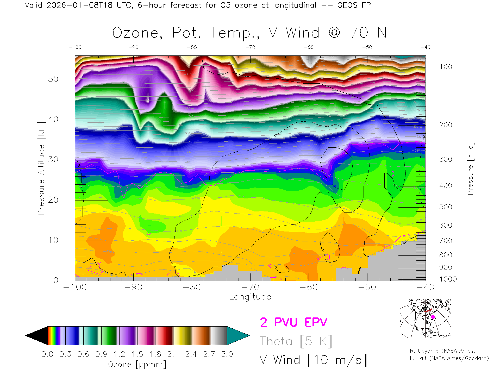 GEOS Forecast Ozone X-Section (70 N)