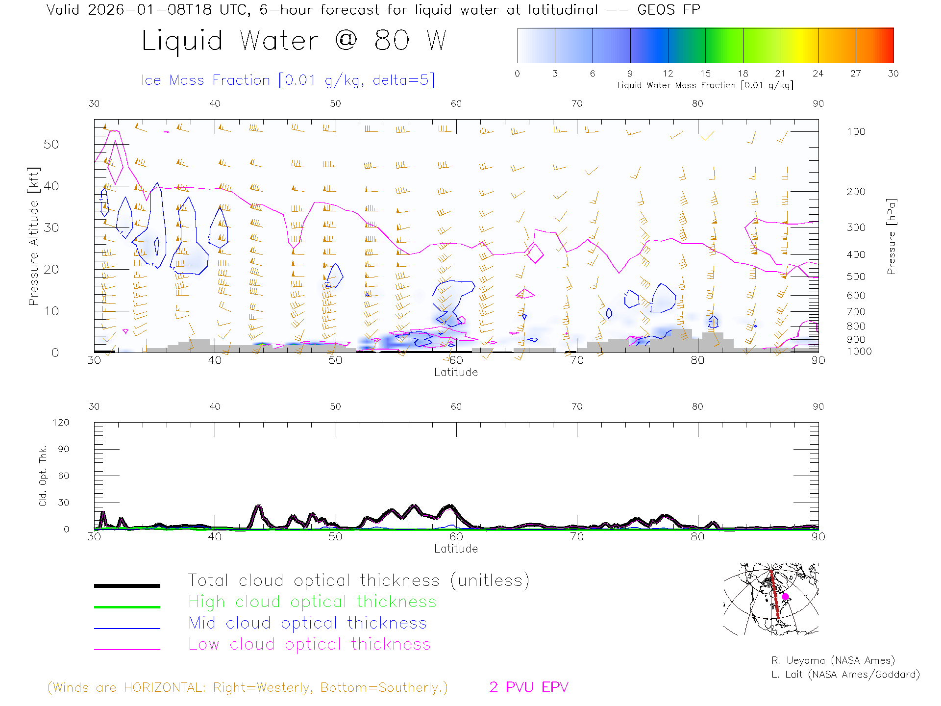 GEOS Forecast Cloud Water Content X-Section (80 W)