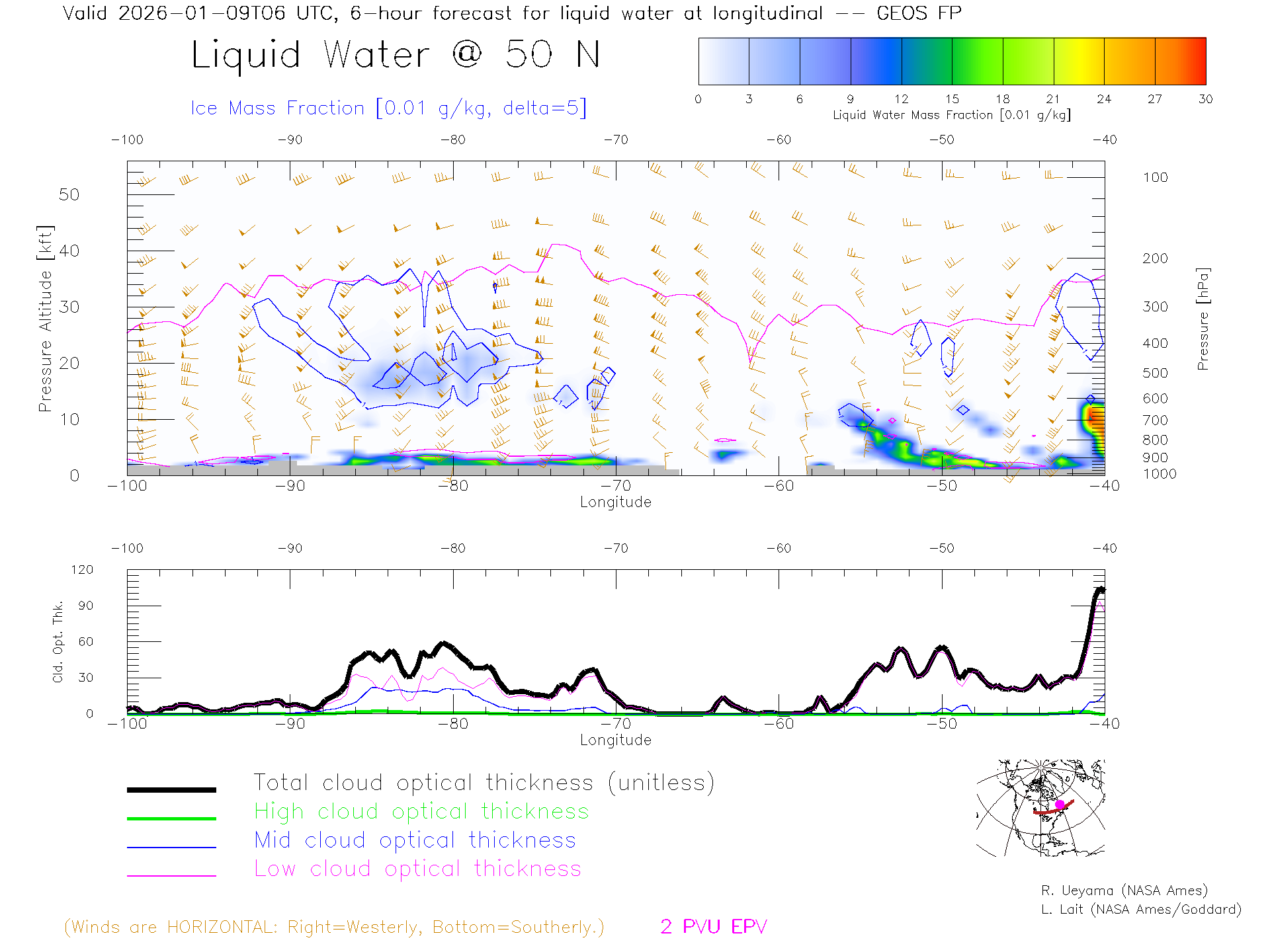 GEOS Forecast Cloud Water Content X-Section (50 N)