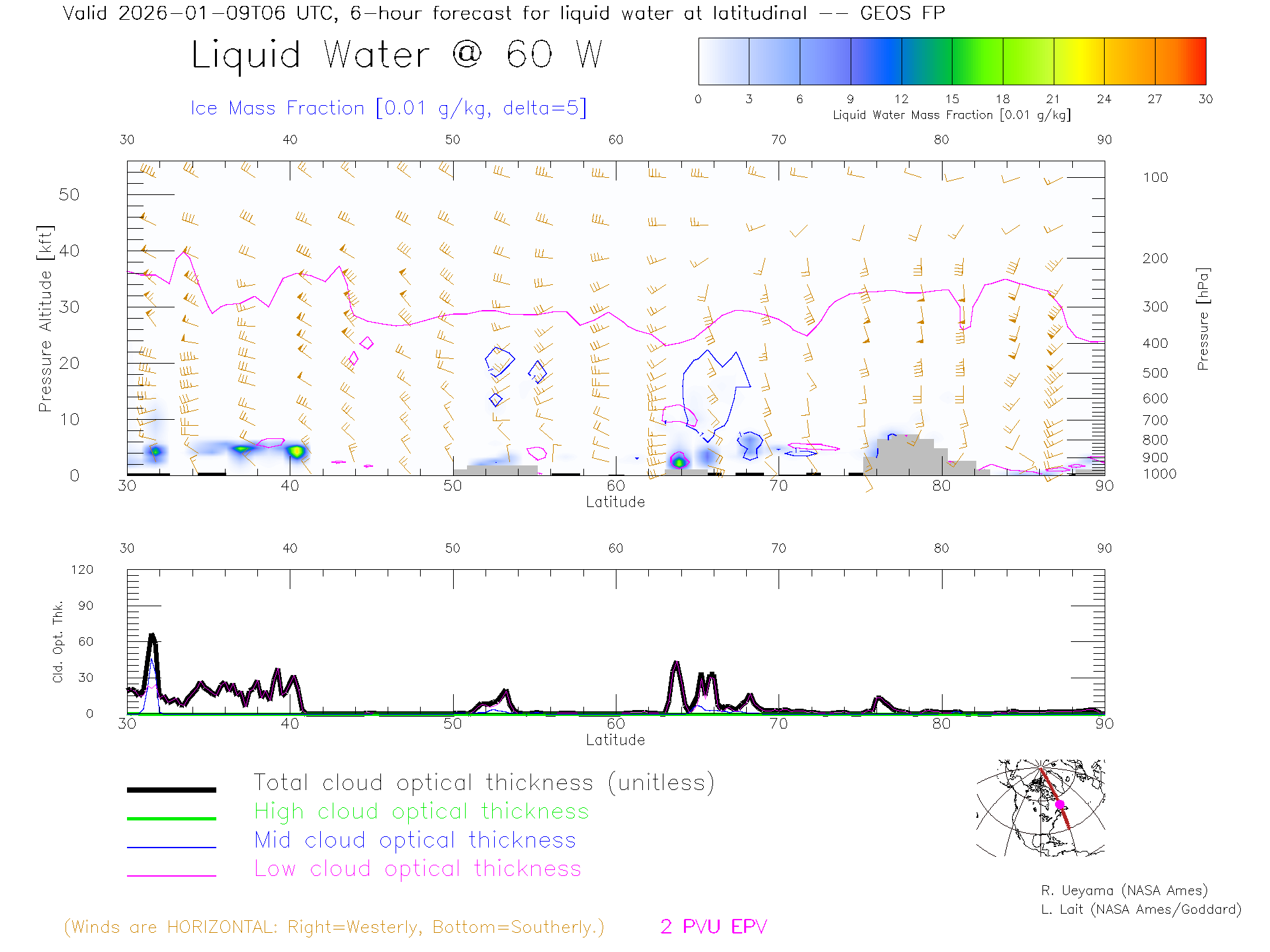 GEOS Forecast Cloud Water Content X-Section (60 W)