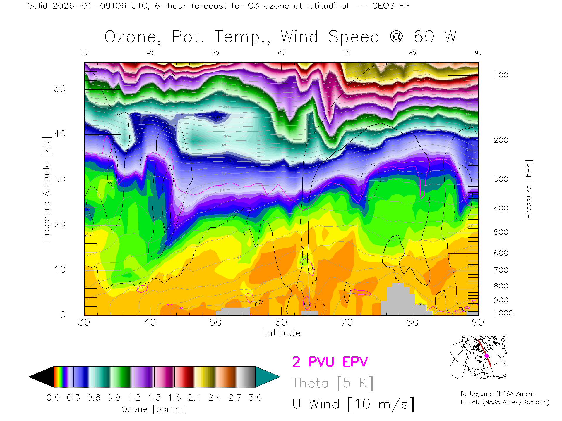 GEOS Forecast Ozone X-Section (60 W)