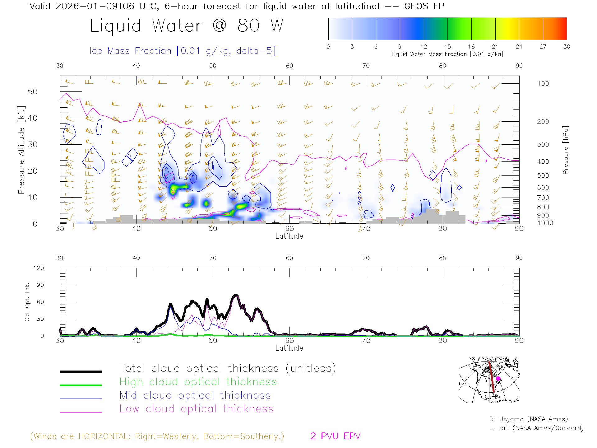 GEOS Forecast Cloud Water Content X-Section (80 W)