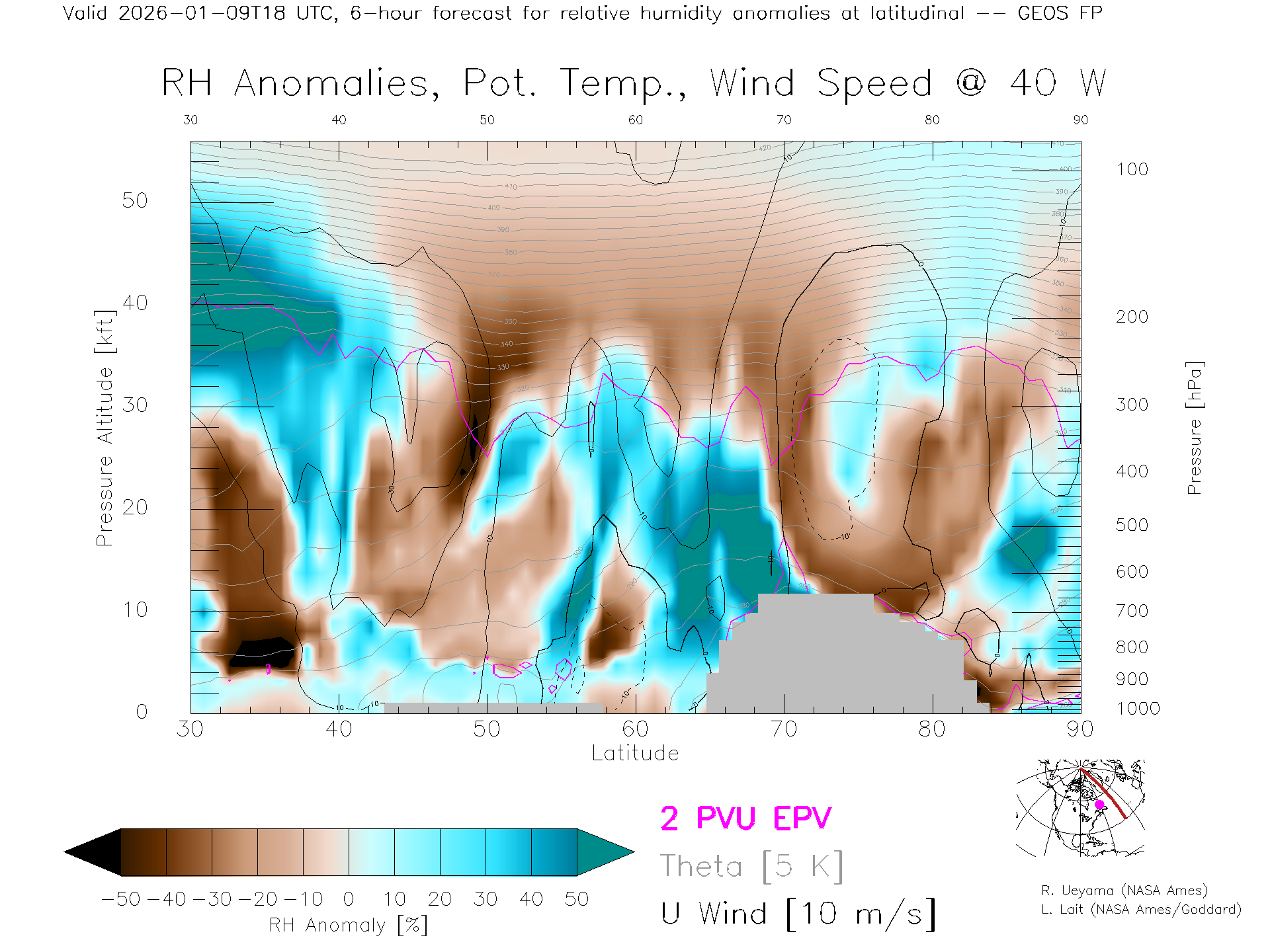 GEOS Forecast Rel. Hum. X-Section (40 W)