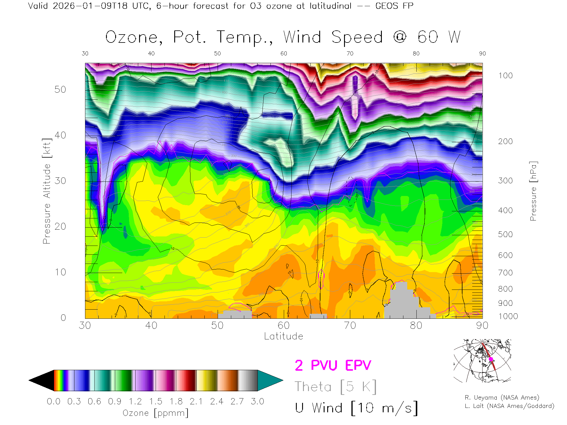GEOS Forecast Ozone X-Section (60 W)