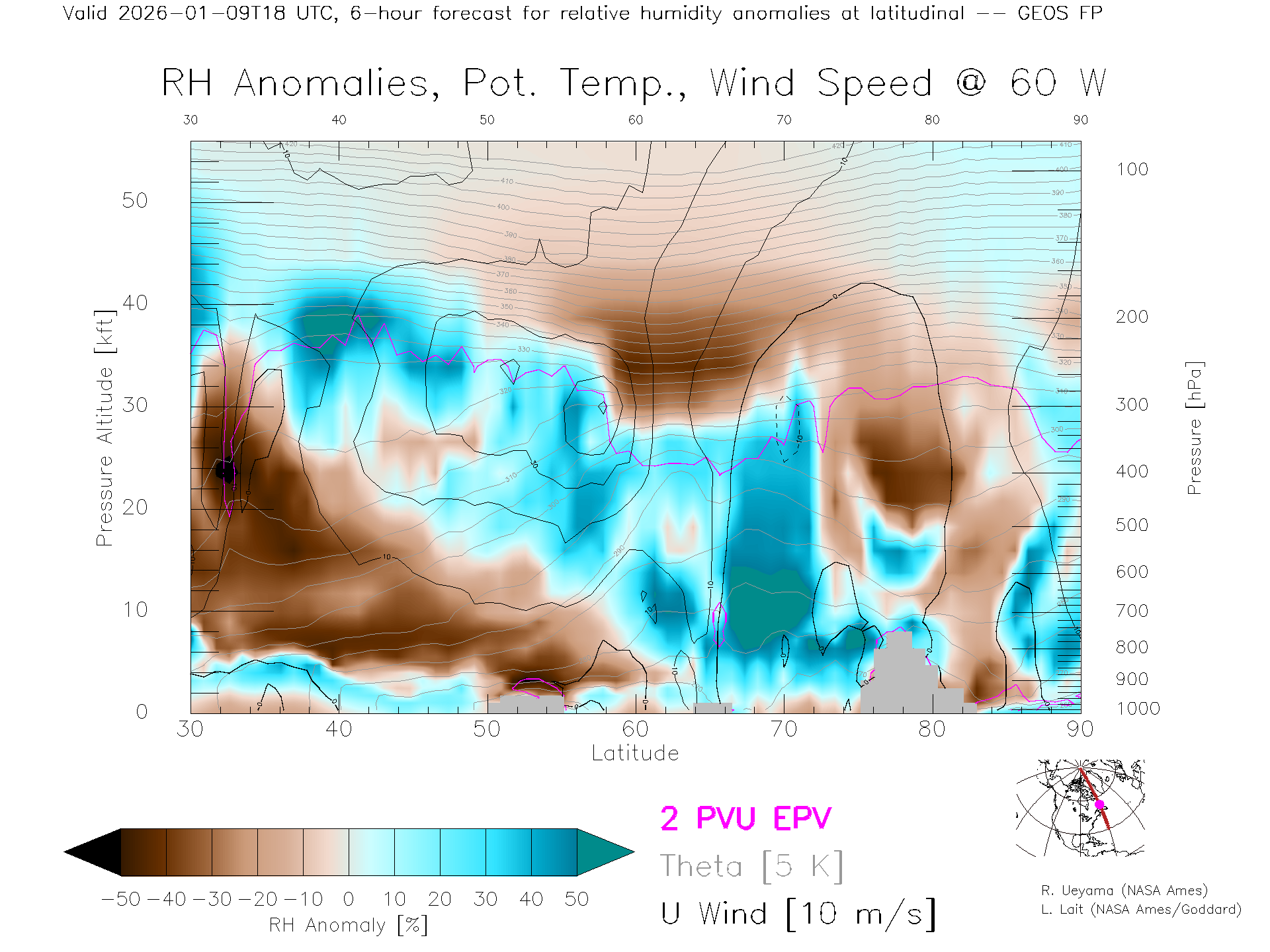 GEOS Forecast Rel. Hum. X-Section (60 W)