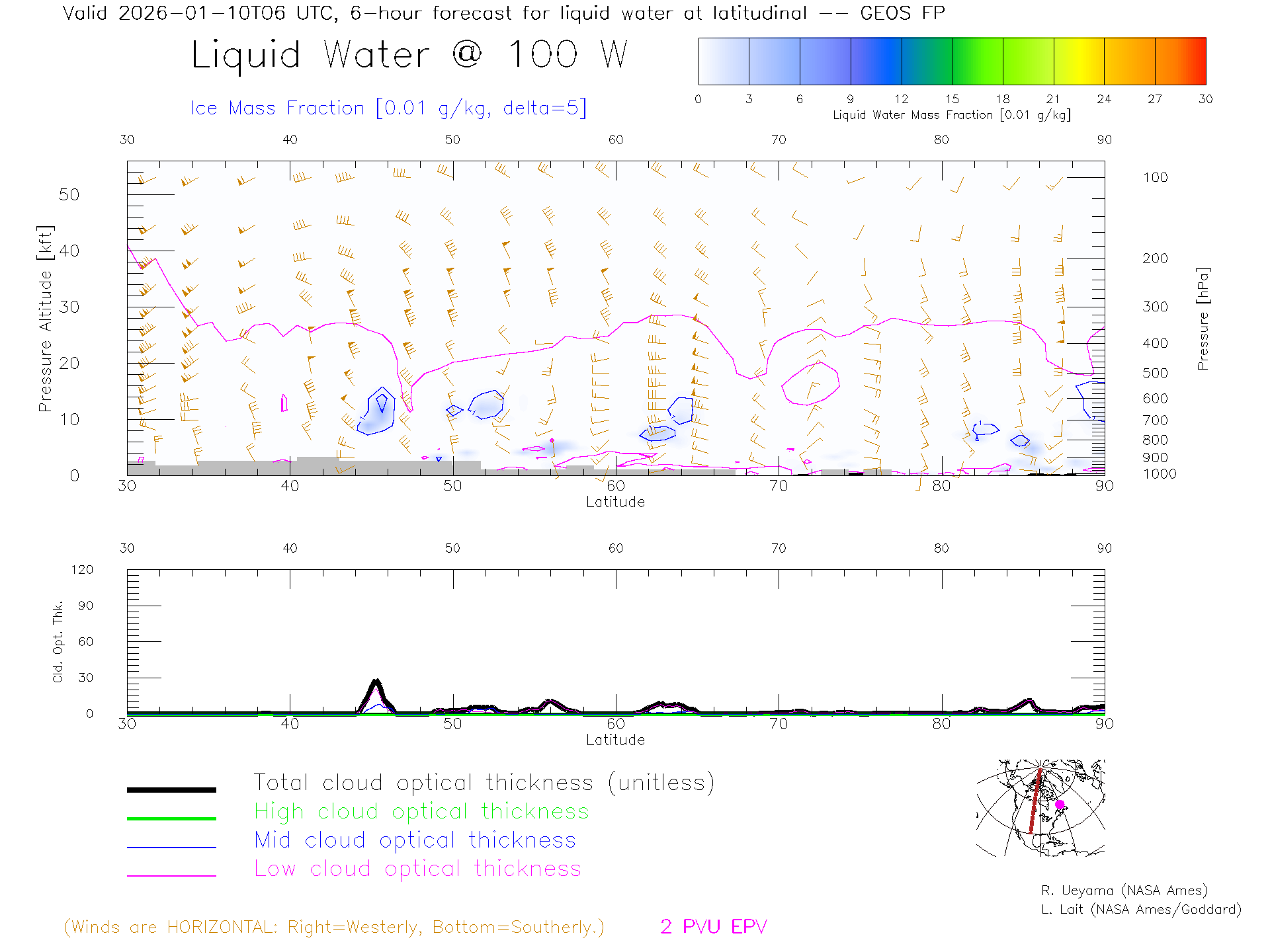 GEOS Forecast Cloud Water Content X-Section (100 W)