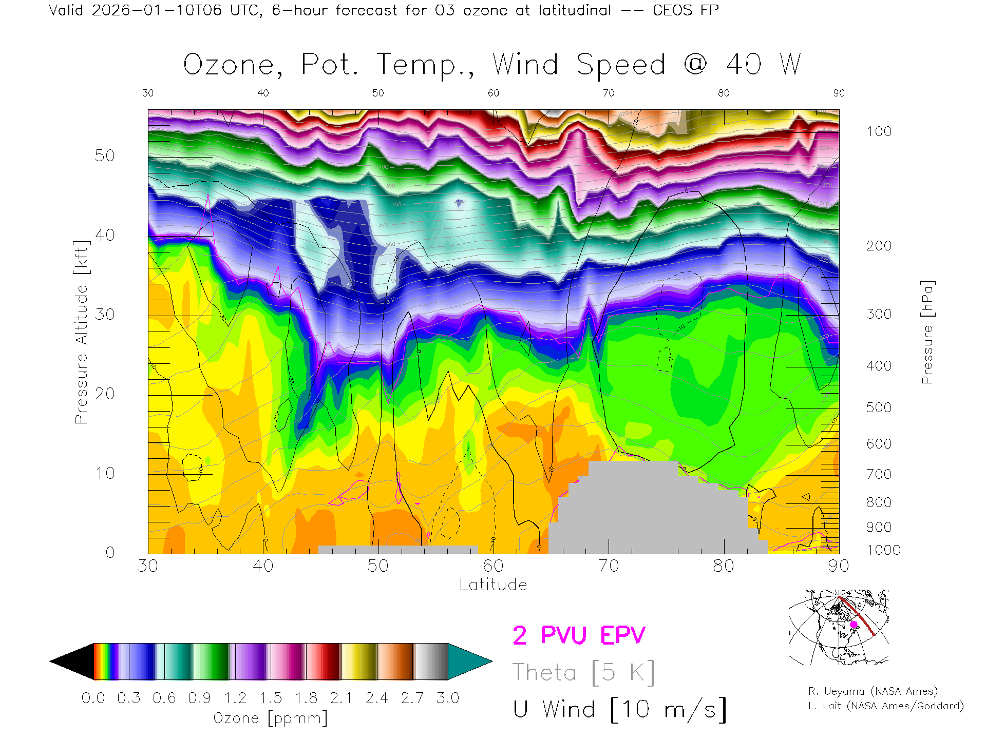 GEOS Forecast Ozone X-Section (40 W)