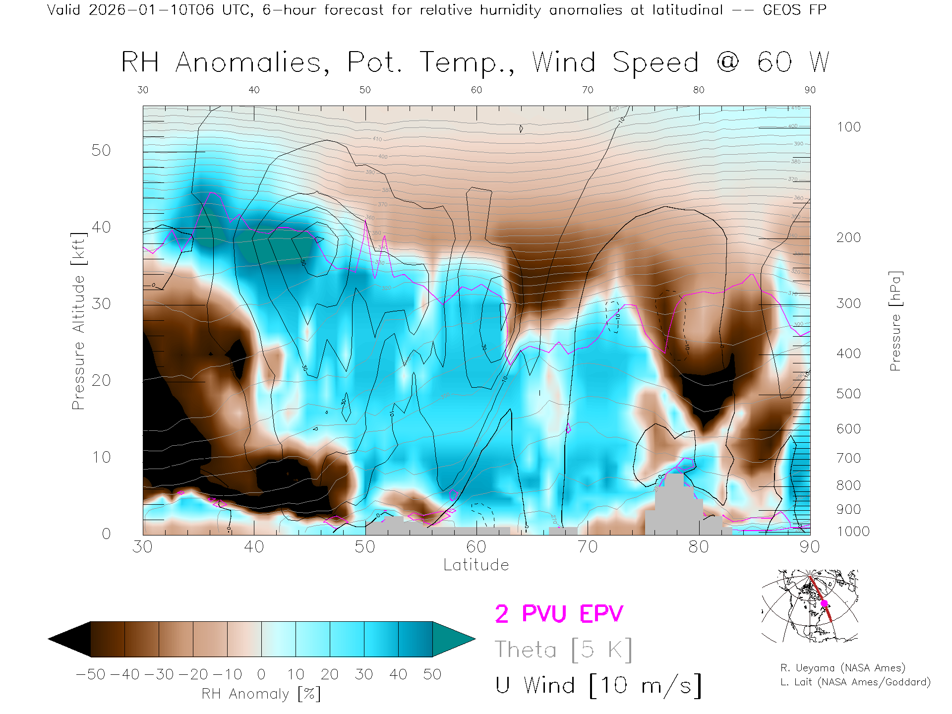 GEOS Forecast Rel. Hum. X-Section (60 W)