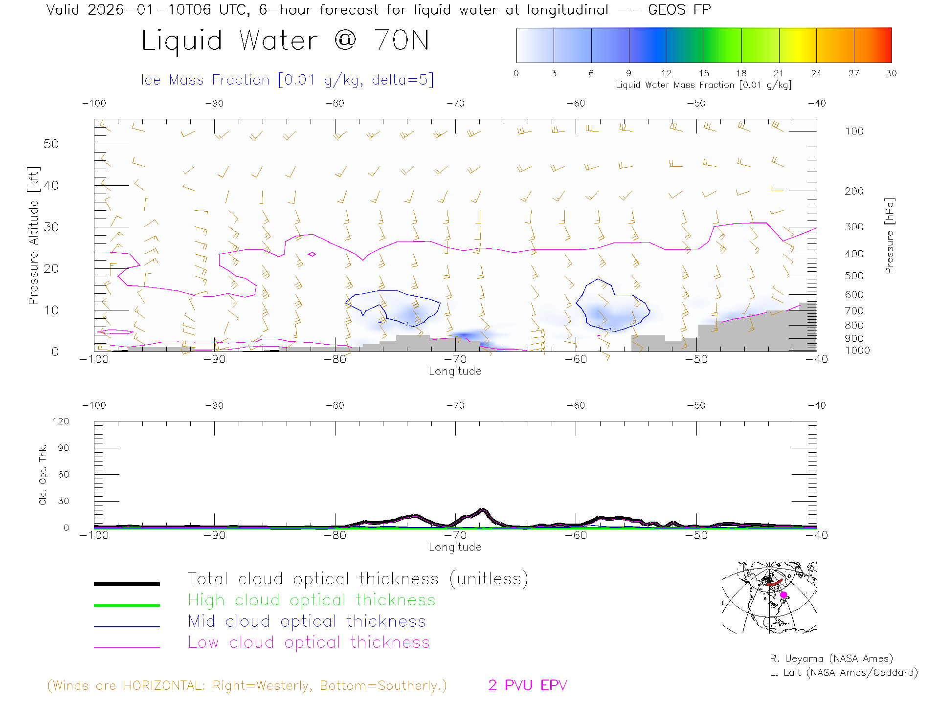 GEOS Forecast Cloud Water Content X-Section (70 N)