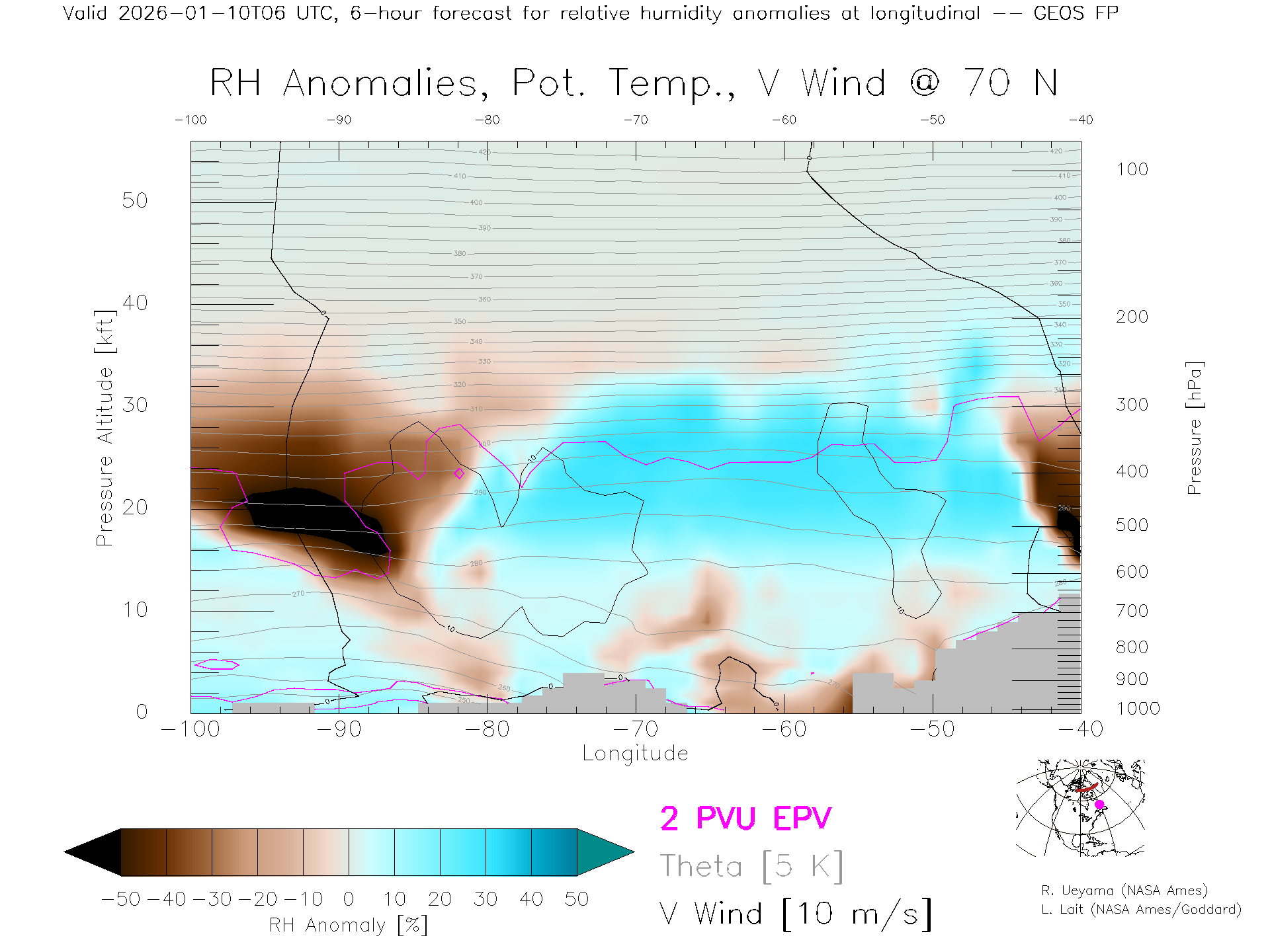 GEOS Forecast Rel. Hum. X-Section (70 N)