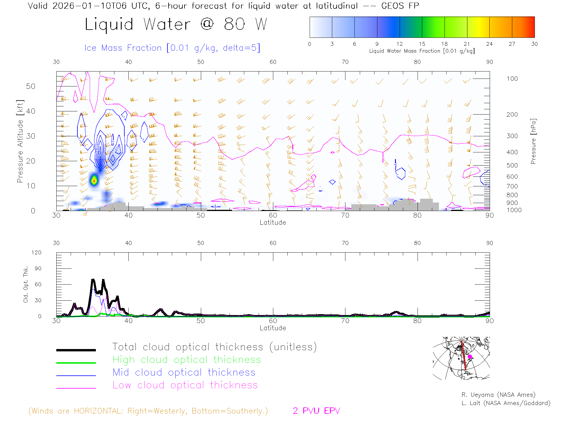 GEOS Forecast Cloud Water Content X-Section (80 W)