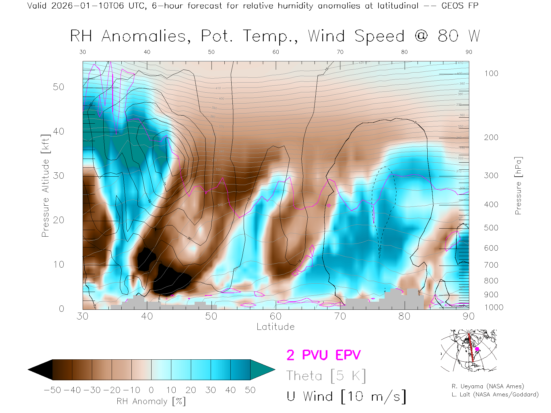 GEOS Forecast Rel. Hum. X-Section (80 W)