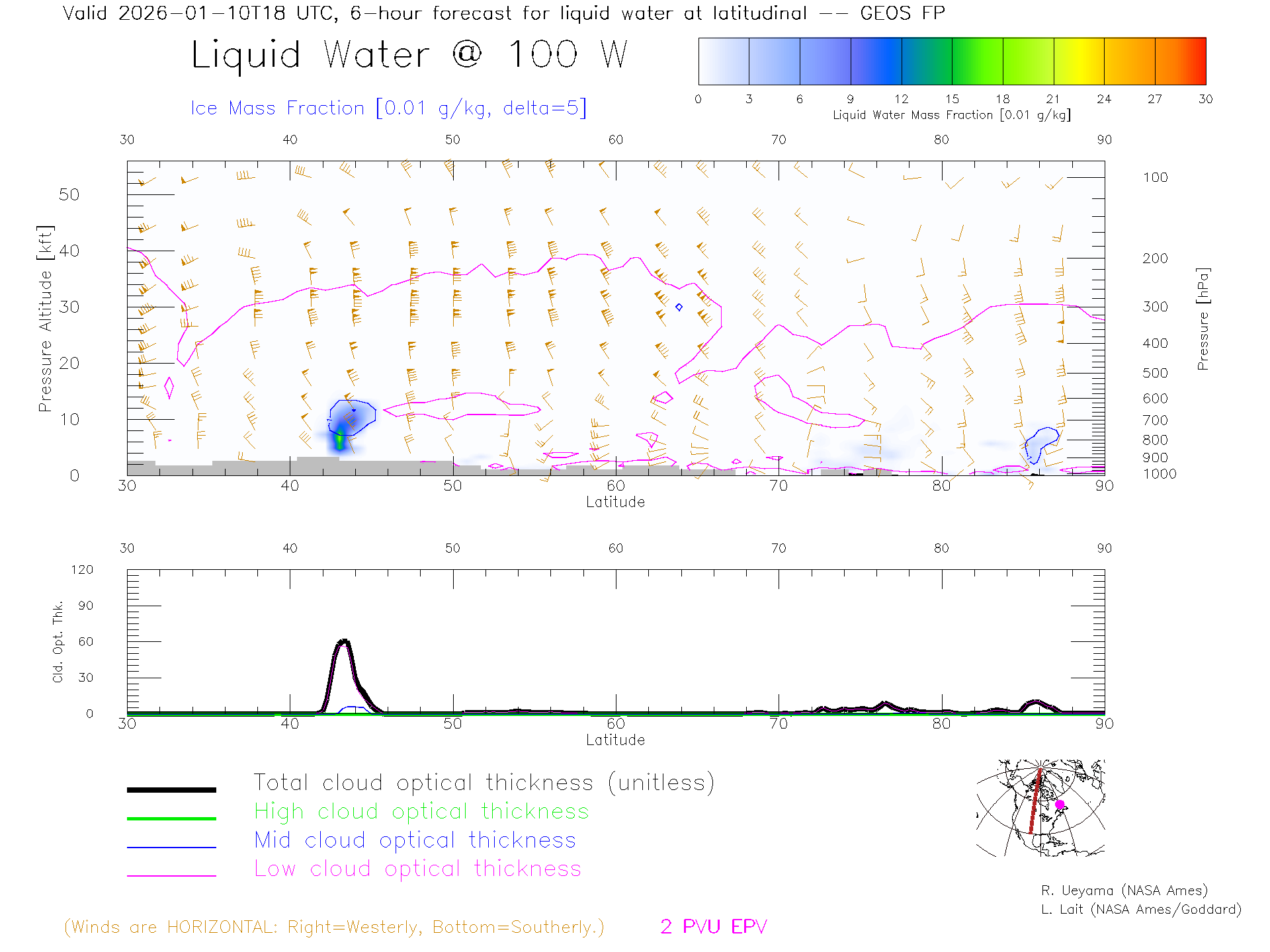 GEOS Forecast Cloud Water Content X-Section (100 W)