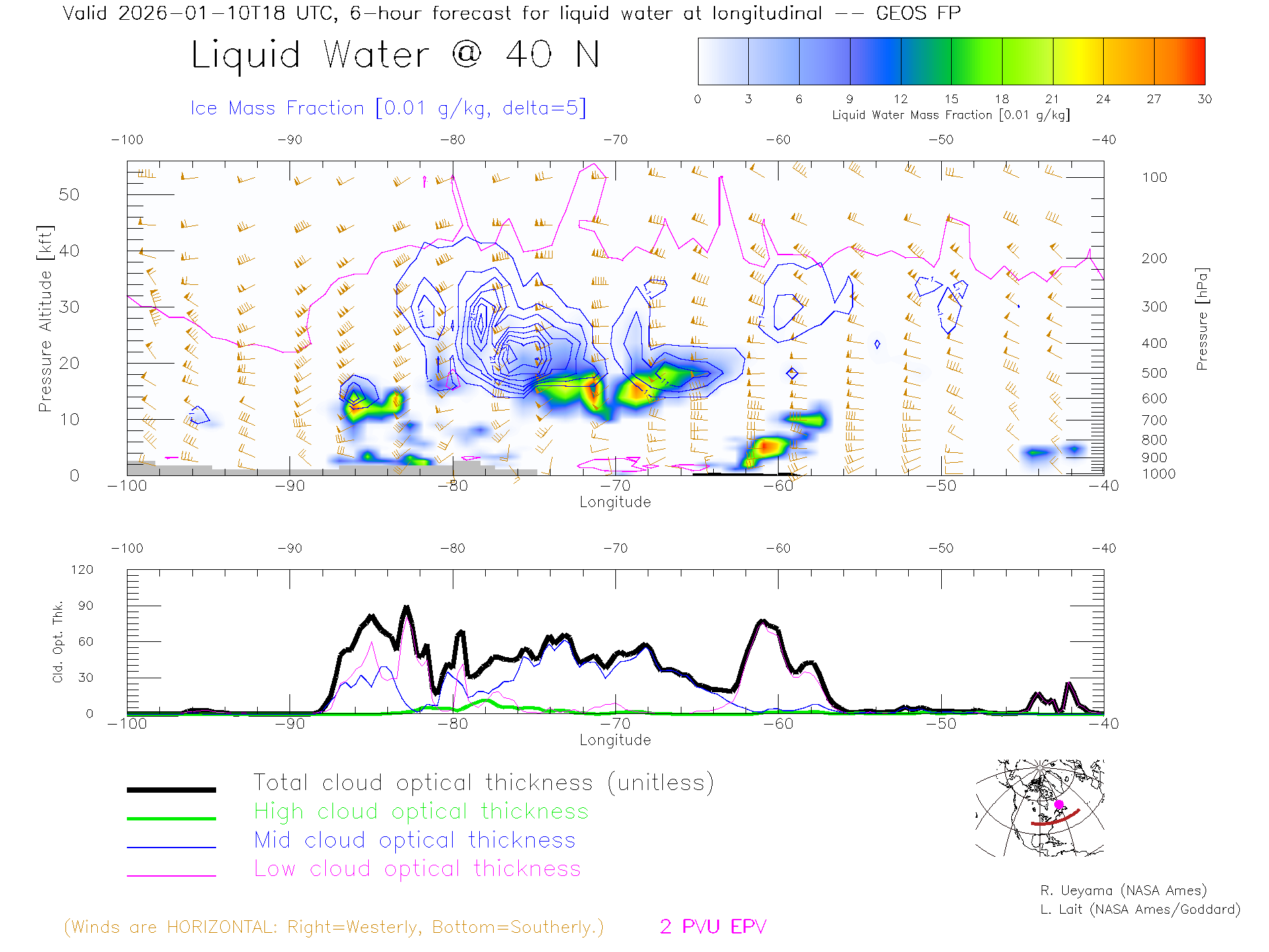 GEOS Forecast Cloud Water Content X-Section (40 N)