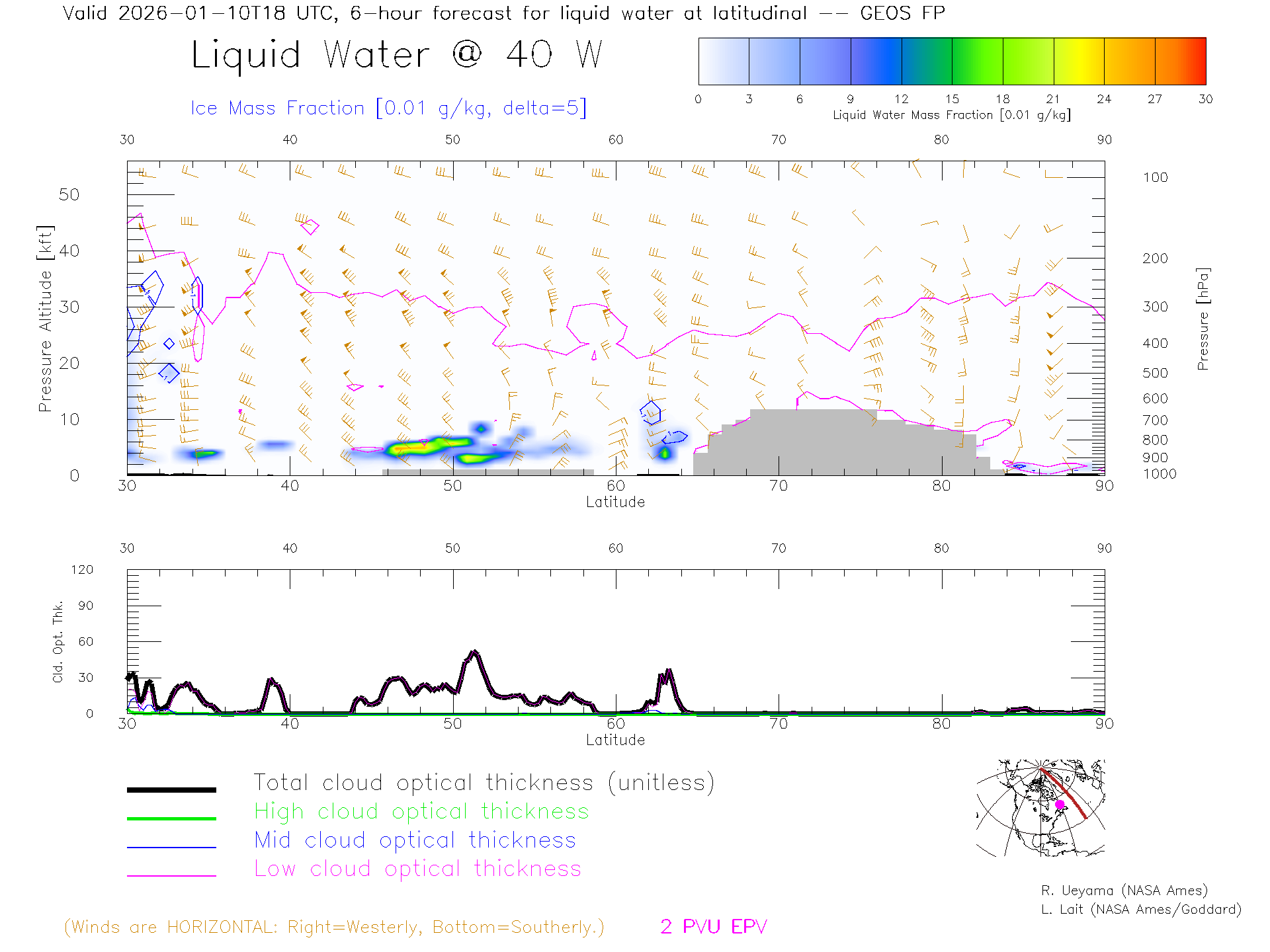 GEOS Forecast Cloud Water Content X-Section (40 W)