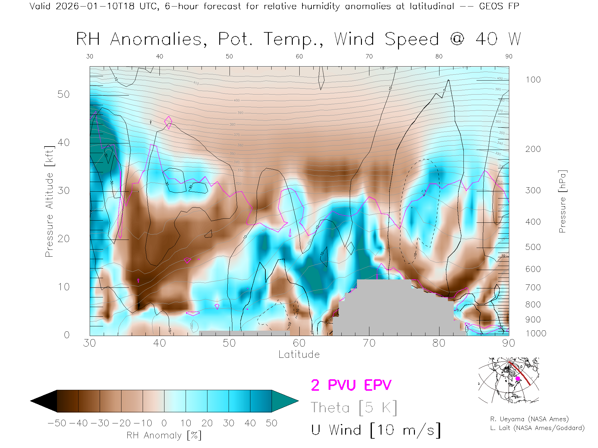 GEOS Forecast Rel. Hum. X-Section (40 W)