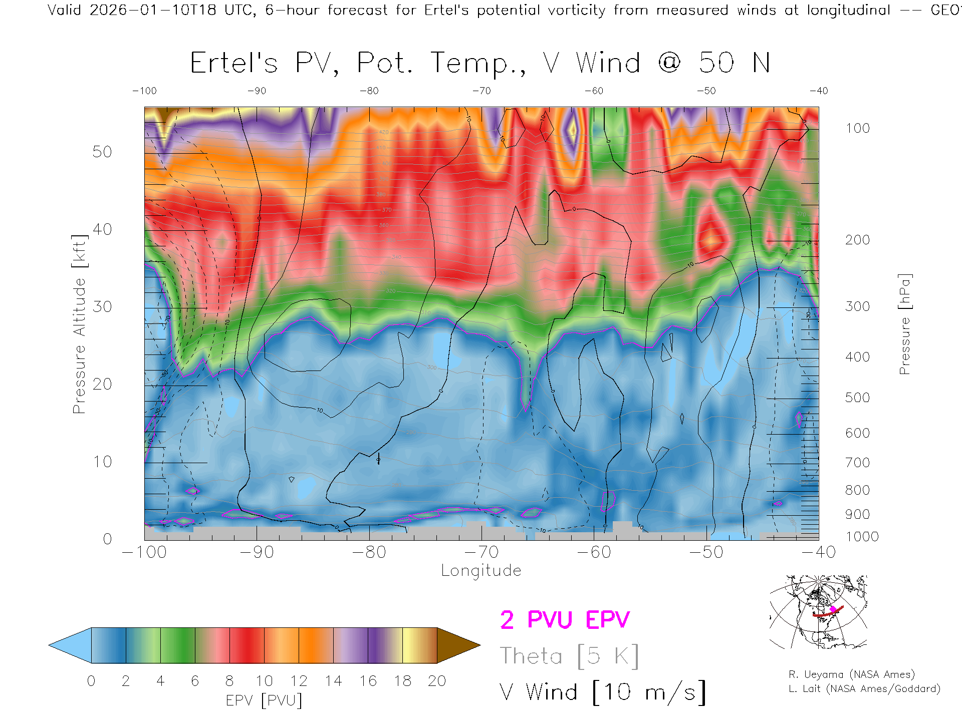 GEOS Forecast PV X-Section (50 N)