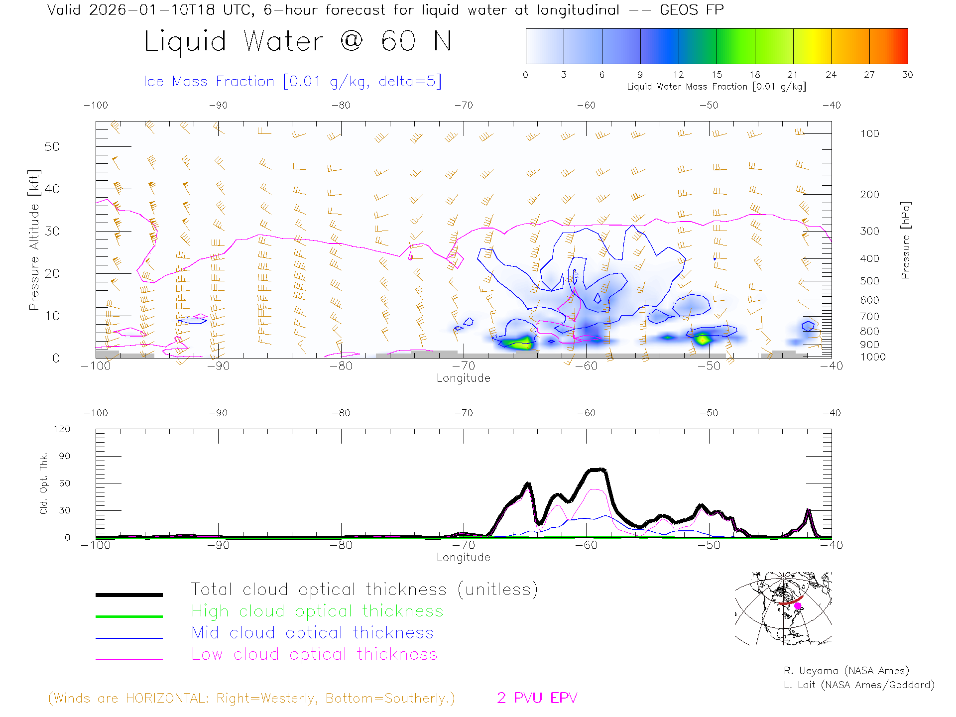 GEOS Forecast Cloud Water Content X-Section (60 N)