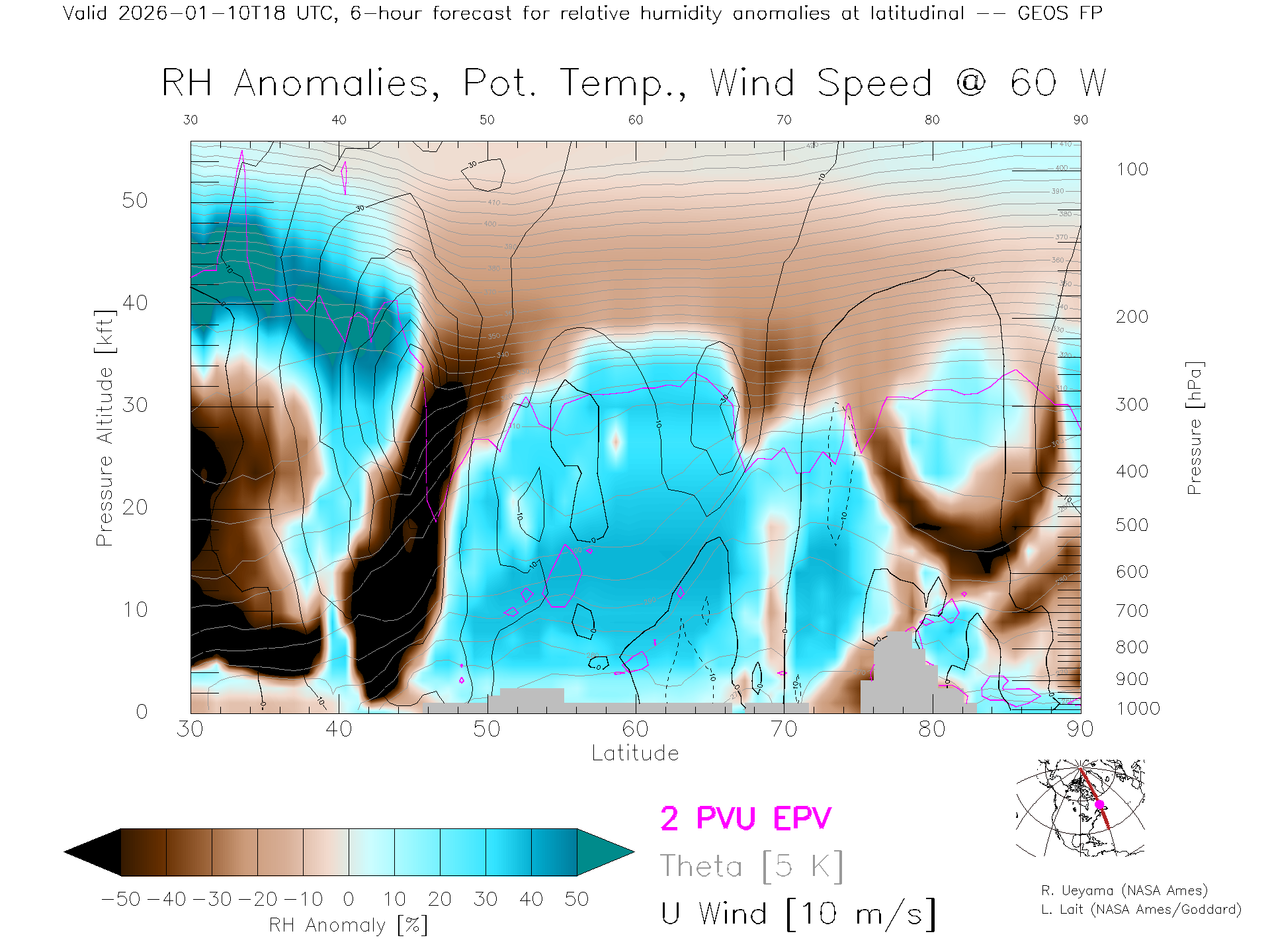 GEOS Forecast Rel. Hum. X-Section (60 W)