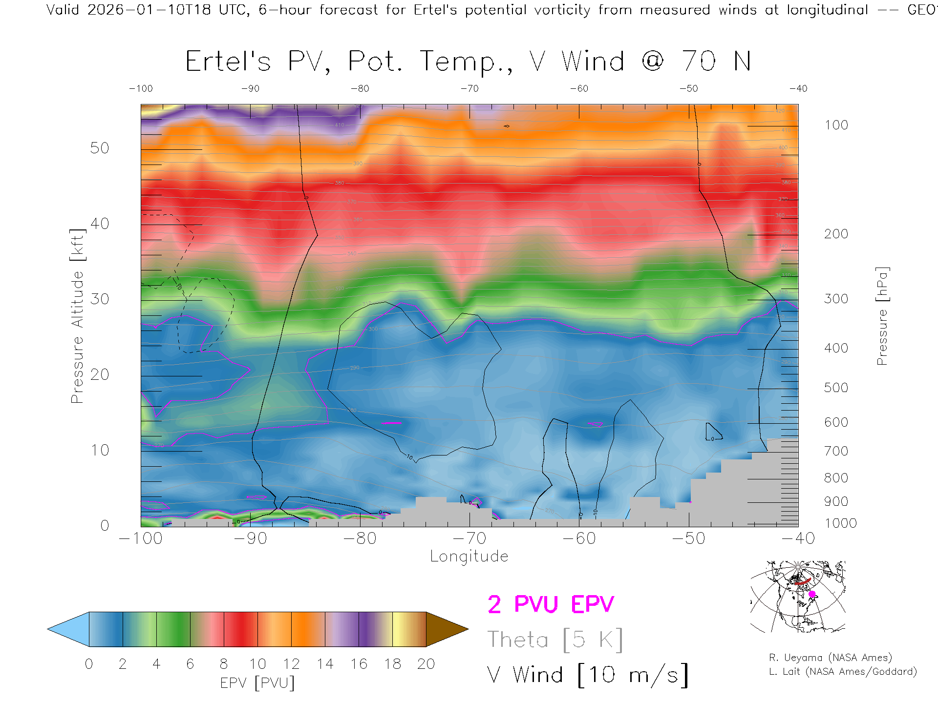 GEOS Forecast PV X-Section (70 N)