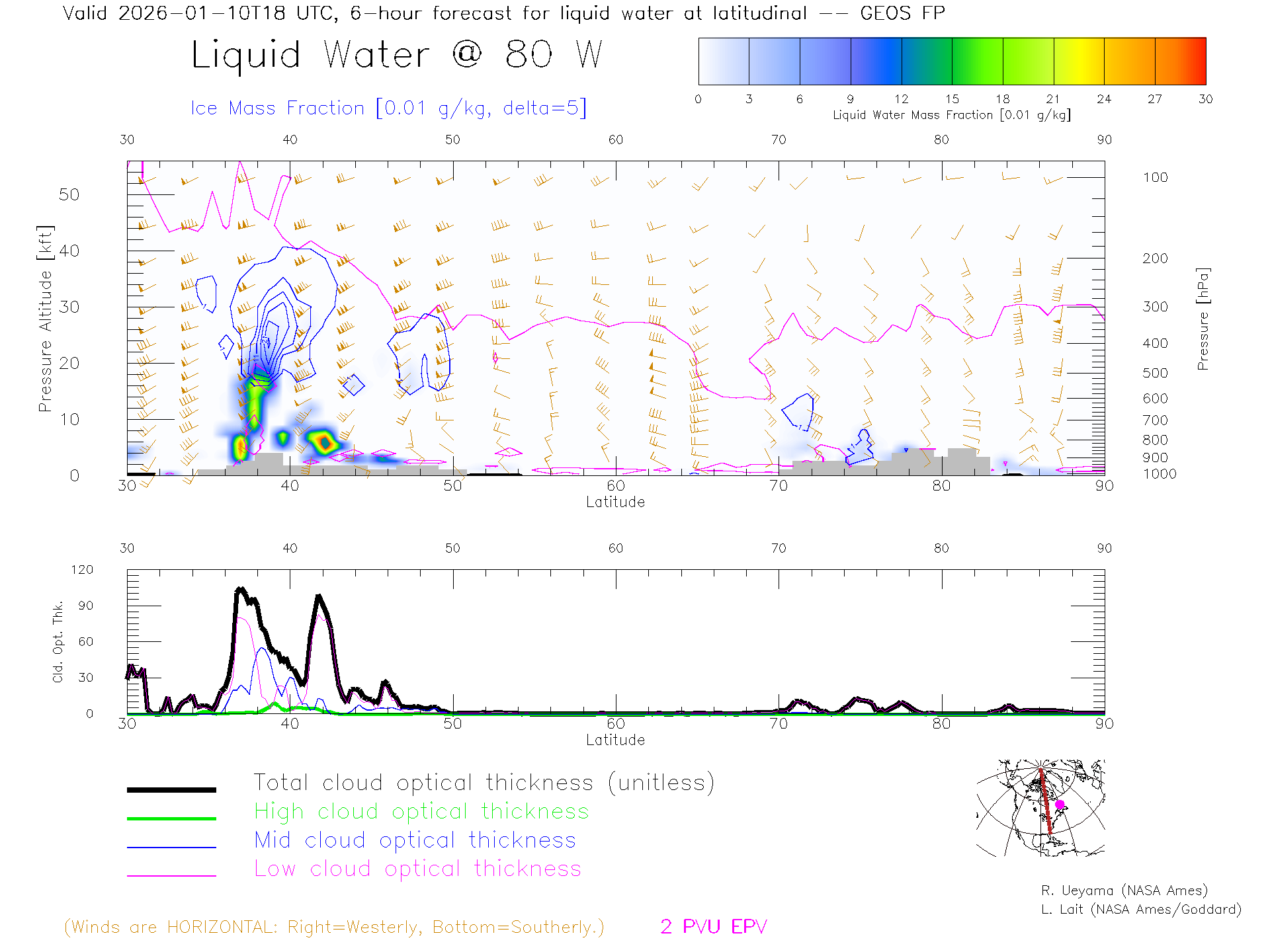 GEOS Forecast Cloud Water Content X-Section (80 W)