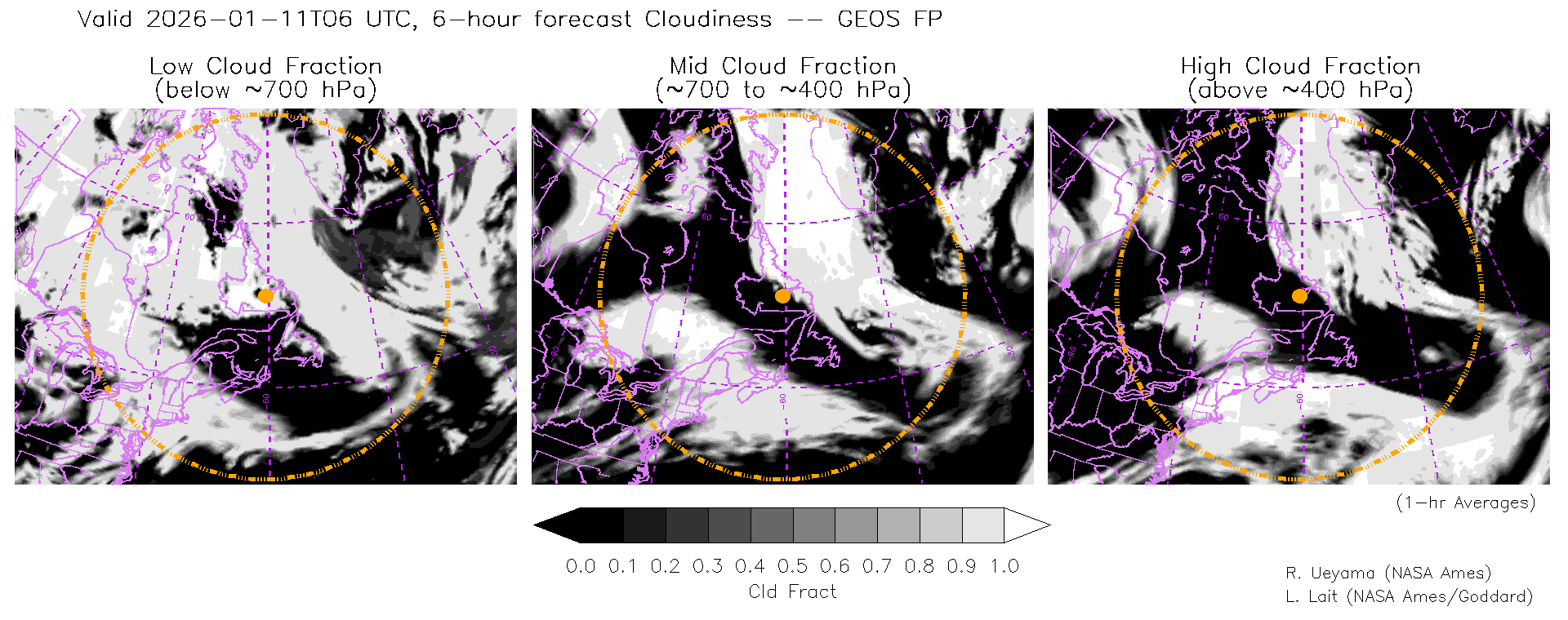 GEOS Forecast Cloud Fraction (High, Mid, Low)