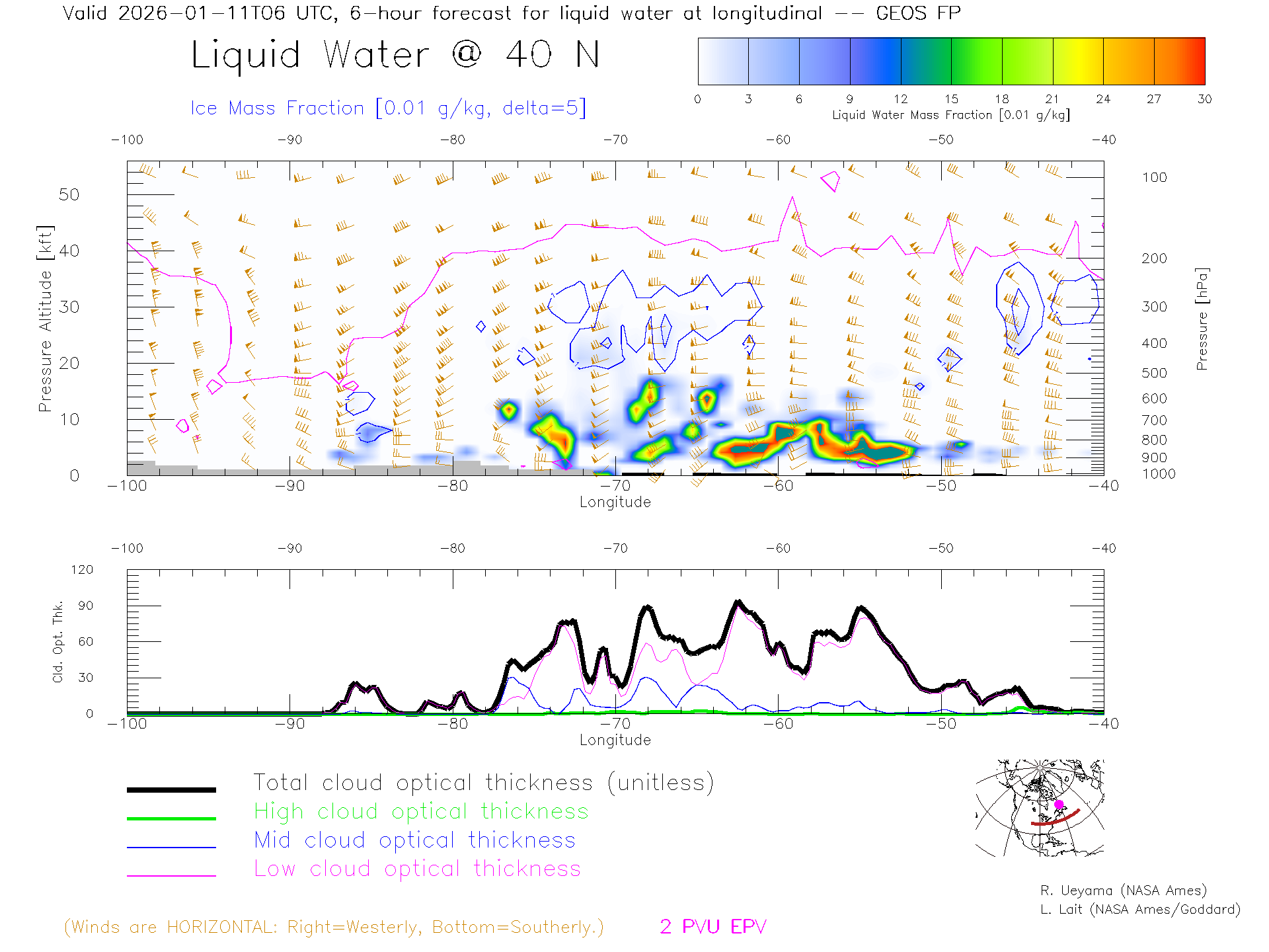 GEOS Forecast Cloud Water Content X-Section (40 N)
